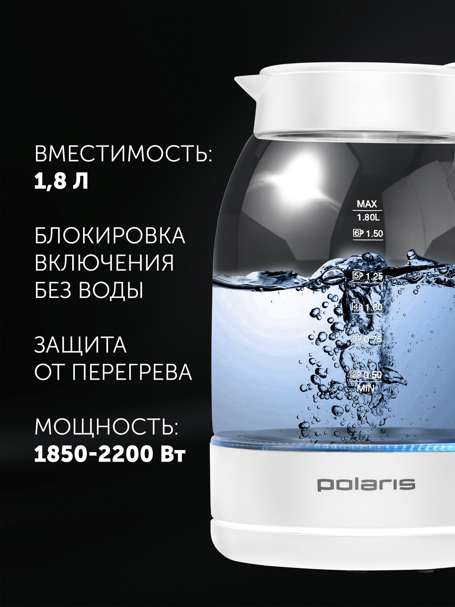 Электрический чайник Polaris PWK 1797CGL Water Way Pro 1.8 л нержавеющая сталь цвет белый (PWK 1729CA Water Way Pro)