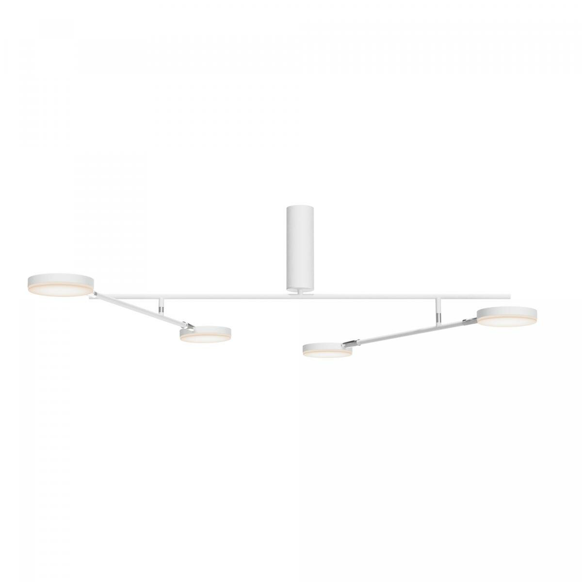 Плафоны и арматура из металла. Цвет рассеивателя — белый, арматура черная или белая. Конструкция предусматривает шарнирный механизм, позволяющий регулировать направление света и высоту светильников. Плафоны вращаются на 90 и 360° (в вертикальной и горизонтальной плоскостях). Угол рассеивания — 120 градусов. Тип света — рассеянный.