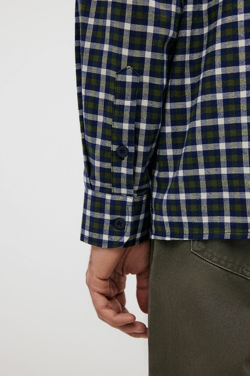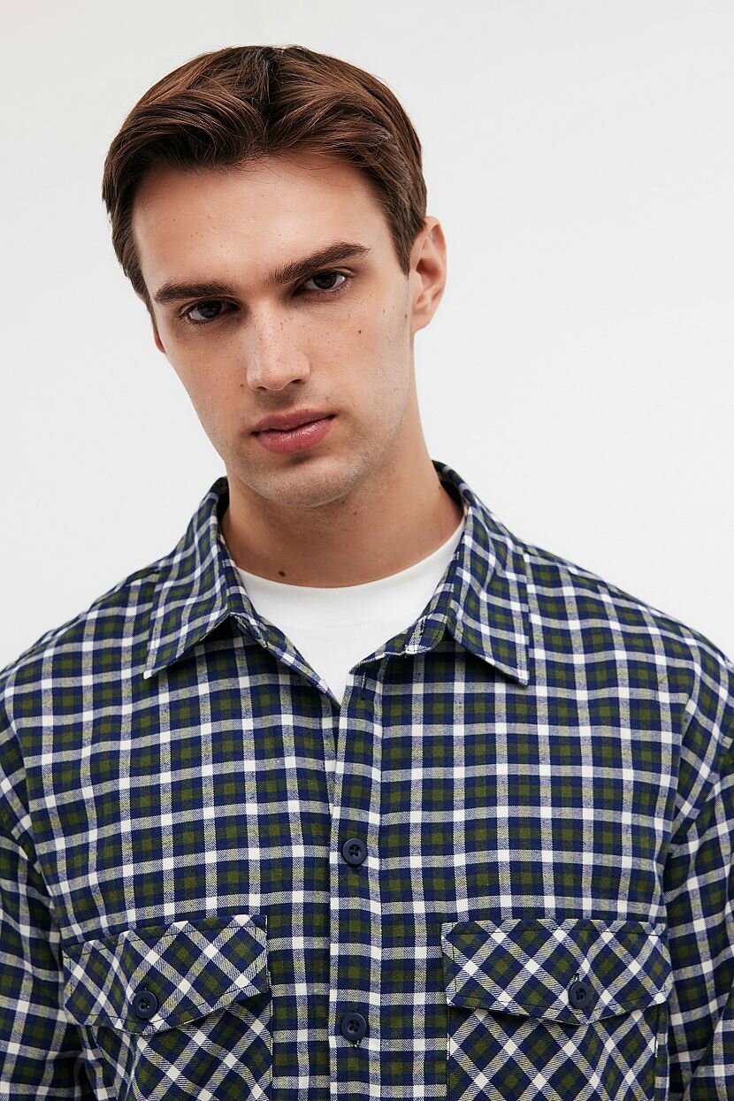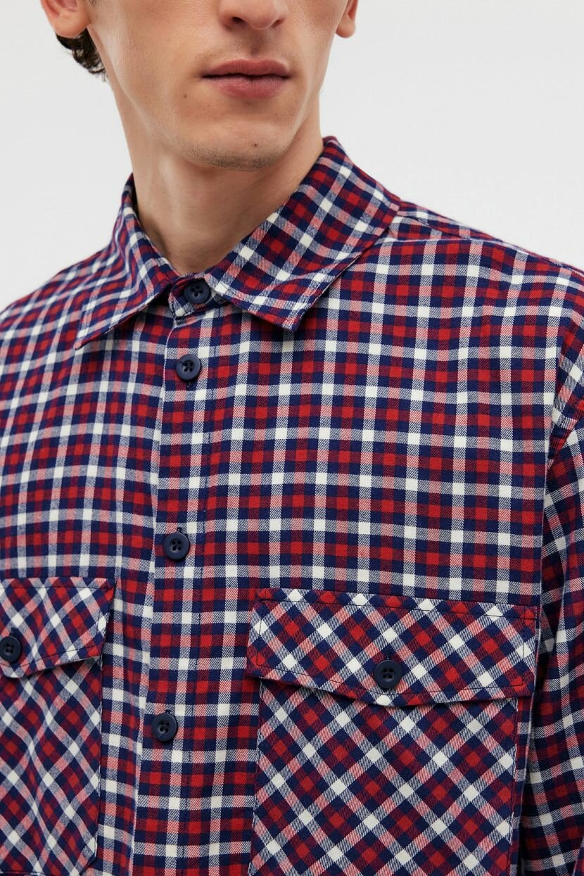 Фланелевая рубашка с длинным рукавом станет стильной составляющей базового мужского гардероба на каждый день. Интересное цветовое решение и минималистичный крой придают повседневным образам расслабленность. Ее можно носить самостоятельно, так и поверх других предметов одежды. Дизайн в клетку остается модным трендом. Клетчатый рисунок привносит в лук непринужденность. Предусмотрены два глубоких накладных кармана с клапанами на груди и застежка на пуговицы по всей длине. Модель прямого в меру свободного силуэта не сковывает движений. Этой цели служит и кокетка на спинке. Выполнена из мягкой теплой фланели, которая создает ощущение комфорта и уюта в межсезонье. Полотно из 100% хлопка обеспечивает комфортную терморегуляцию. Оно обладает высокой гигроскопичностью и гипоаллергенными свойствами, что делает изделие идеальным для обладателей чувствительной кожи. Отлично держит форму.