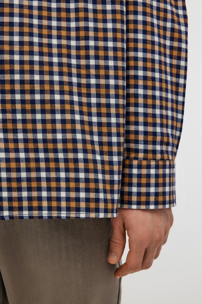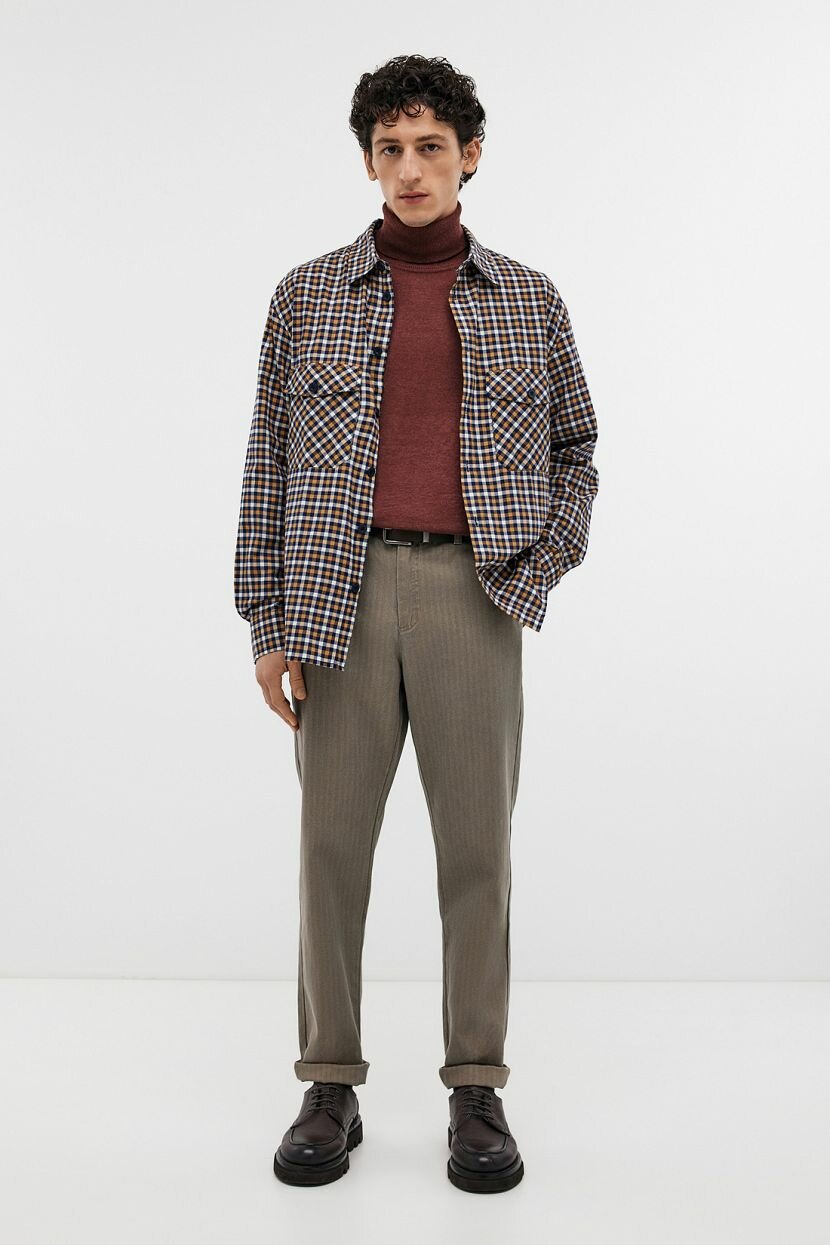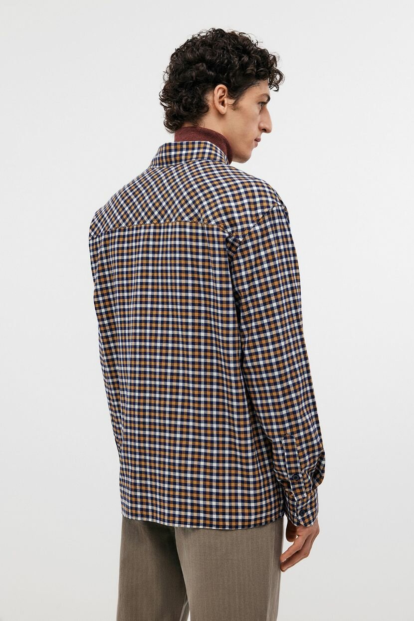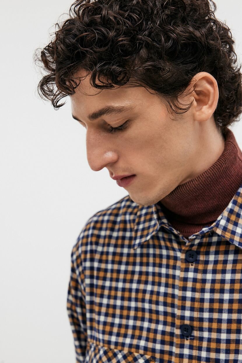Фланелевая рубашка с длинным рукавом станет стильной составляющей базового мужского гардероба на каждый день. Интересное цветовое решение и минималистичный крой придают повседневным образам расслабленность. Ее можно носить самостоятельно, так и поверх других предметов одежды. Дизайн в клетку остается модным трендом. Клетчатый рисунок привносит в лук непринужденность. Предусмотрены два глубоких накладных кармана с клапанами на груди и застежка на пуговицы по всей длине. Модель прямого в меру свободного силуэта не сковывает движений. Этой цели служит и кокетка на спинке. Выполнена из мягкой теплой фланели, которая создает ощущение комфорта и уюта в межсезонье. Полотно из 100% хлопка обеспечивает комфортную терморегуляцию. Оно обладает высокой гигроскопичностью и гипоаллергенными свойствами, что делает изделие идеальным для обладателей чувствительной кожи. Отлично держит форму.