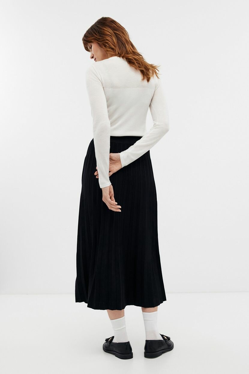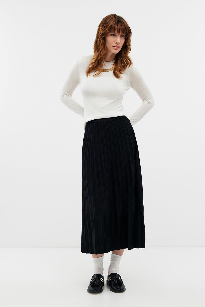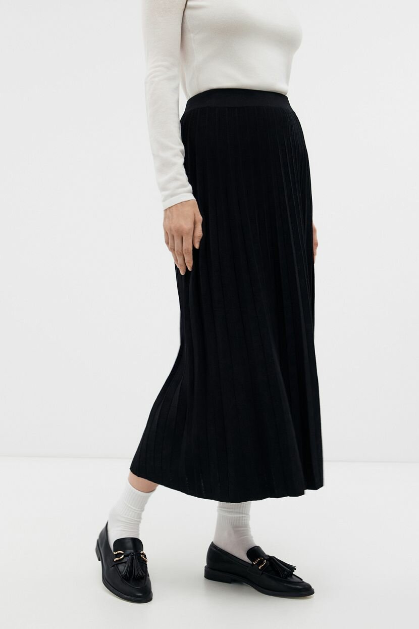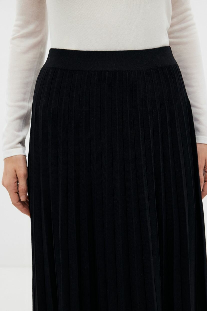 Трикотажная юбка миди служит трендовым символом женственности и безупречного вкуса. Универсальное цветовое решение и лаконичность делают ее идеальной для интеграции в образы на каждый день. Уместна в луке для офиса и встреч с друзьями. А-силуэт добавляет легкости и воздушности. Высокая посадка и эластичный пояс корректируют пропорции силуэта, делая его гармоничным. Вывязанный узор плиссе - классическое украшение вне времени. Выполнена из смесовой пряжи. Трикотаж на основе вискозы обладает удивительной мягкостью, что дарит тактильный комфорт. Она придает дышащие свойства и отличается гигроскопичностью. Добавление нейлона позволяет сохранить форму и повысить устойчивость к дефектам. Не требует специального ухода и не мнется.