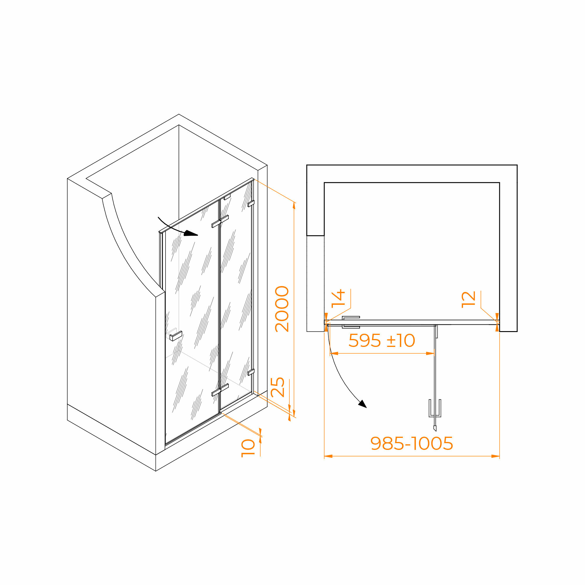 - Размеры с диапазоном регулировок (ШхВ): 985-1005х2000 мм.