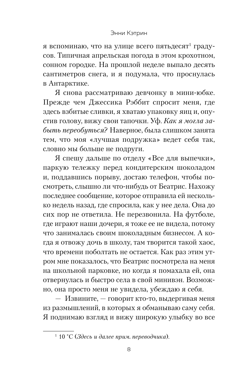 Фэллон Монро – мама, любительница книг по самопомощи и талантливая шоколатье, всегда полагалась на своих подруг из пригорода Чикаго. Внезапно ее лучшая подруга Беатрис отказывается общаться…