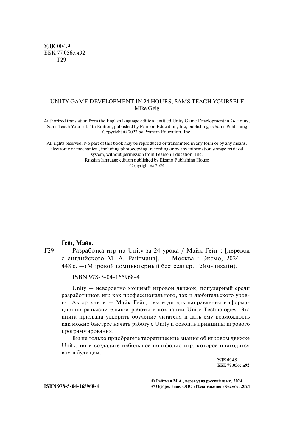 Разработка игр на Unity за 24 урока. 4-е издание (Гейг Майк); ООО "Издательство "Эксмо", 2024