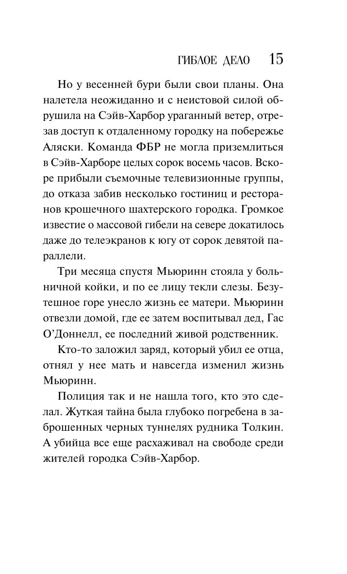 Журналистка Мьюринн О'Доннелл возвращается в родной город на Аляске, чтобы расследовать таинственную смерть отца и деда. Она просит помощи у единственного человека, которому доверяет — пилота Джета Ратледжа, своей первой любви. Раскрывая темные и ужасные тайны прошлого, Мьюринн и Джет должны рассказать друг другу и собственные секреты. Но есть ли у них на это время? Ведь убийца где-то рядом.