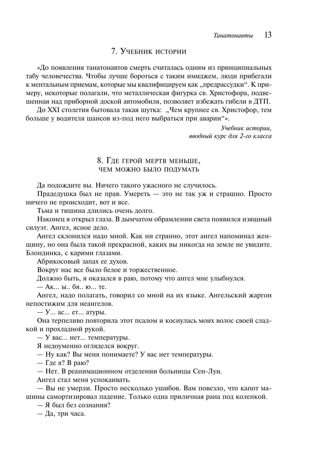 Смерть. Точка невозврата, которая заставляет живых ощущать растерянность и страх. Оттуда еще никто не возвращался и там, за гранью жизни, никто еще не бывал в качестве гостя. Однако с изобретением танатонавтики все меняется. Смельчаки Мишель Пинсон и Рауль Разорбак изобрели способ путешествовать по краю теней, а это повлекло за собой непредсказуемые последствия – ведь каждая конфессия желает доказать свою правоту и колонизировать загробный мир.Мишелю и Раулю предстоит на практике познать все тонкости ангельского ремесла и разобраться в туманной небесной иерархии. Но они не были бы настоящими исследователями, если бы остановились на этом. Куда отправляются ангелы, исполнившие свое предназначение? Кто принимает решения выше ангельского мира? И что, если ответы на эти вопросы скрываются в других галактиках?