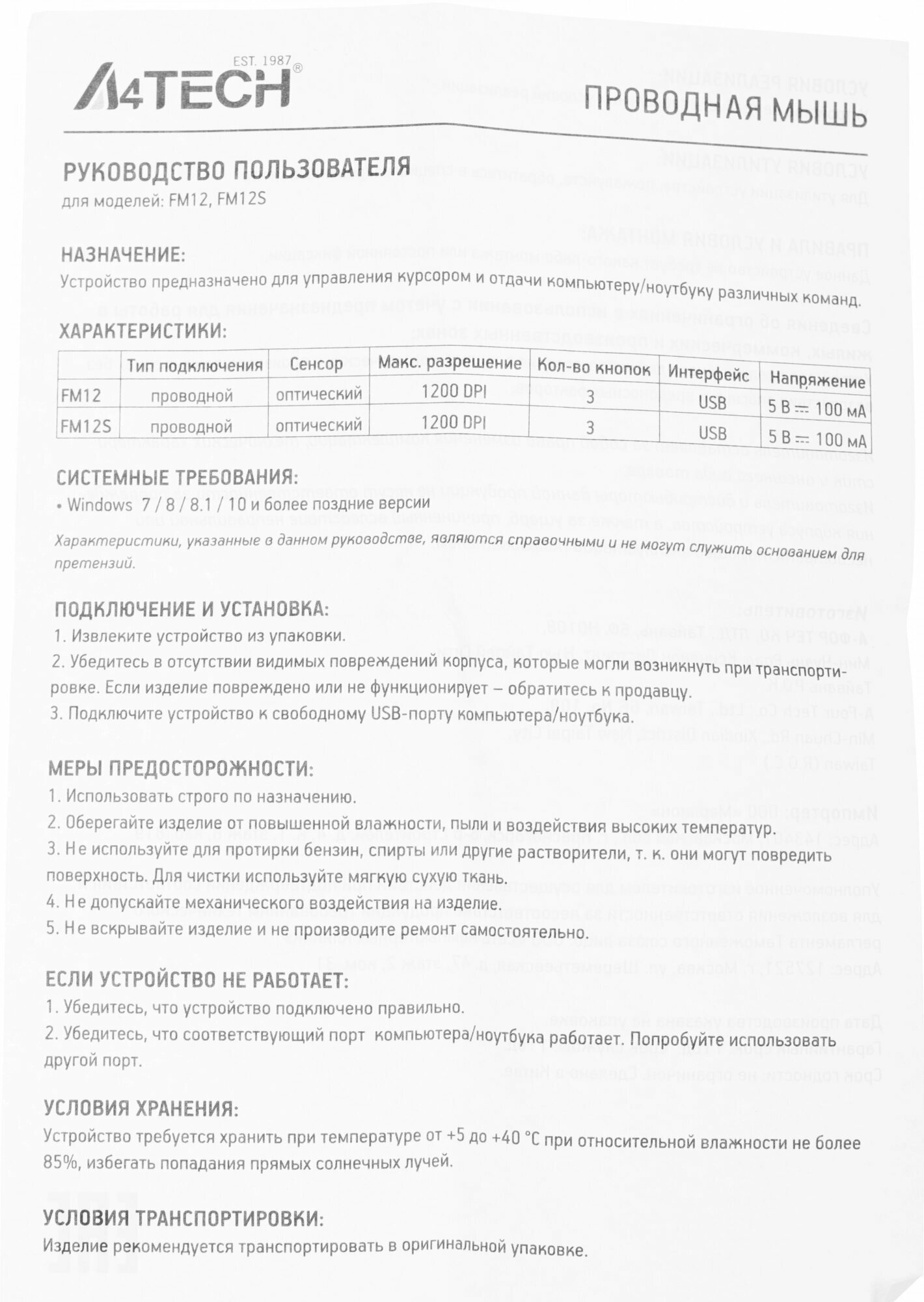 На сегодняшний день товар «Мышь проводная A4Tech Fstyler FM12S 1200dpi USB Черный/Белый FM12S PANDA» можно купить с кешбеком в 1 магазине: xcom-shop