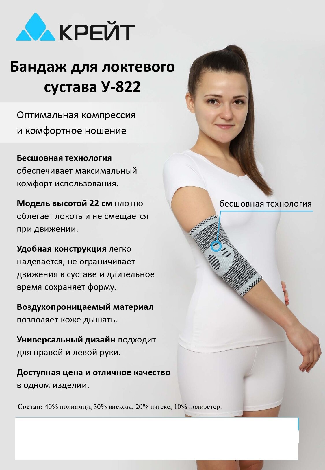 Бандаж для локтевого сустава Крейт У-822 серый р. 1 Крейт ООО (2451226)