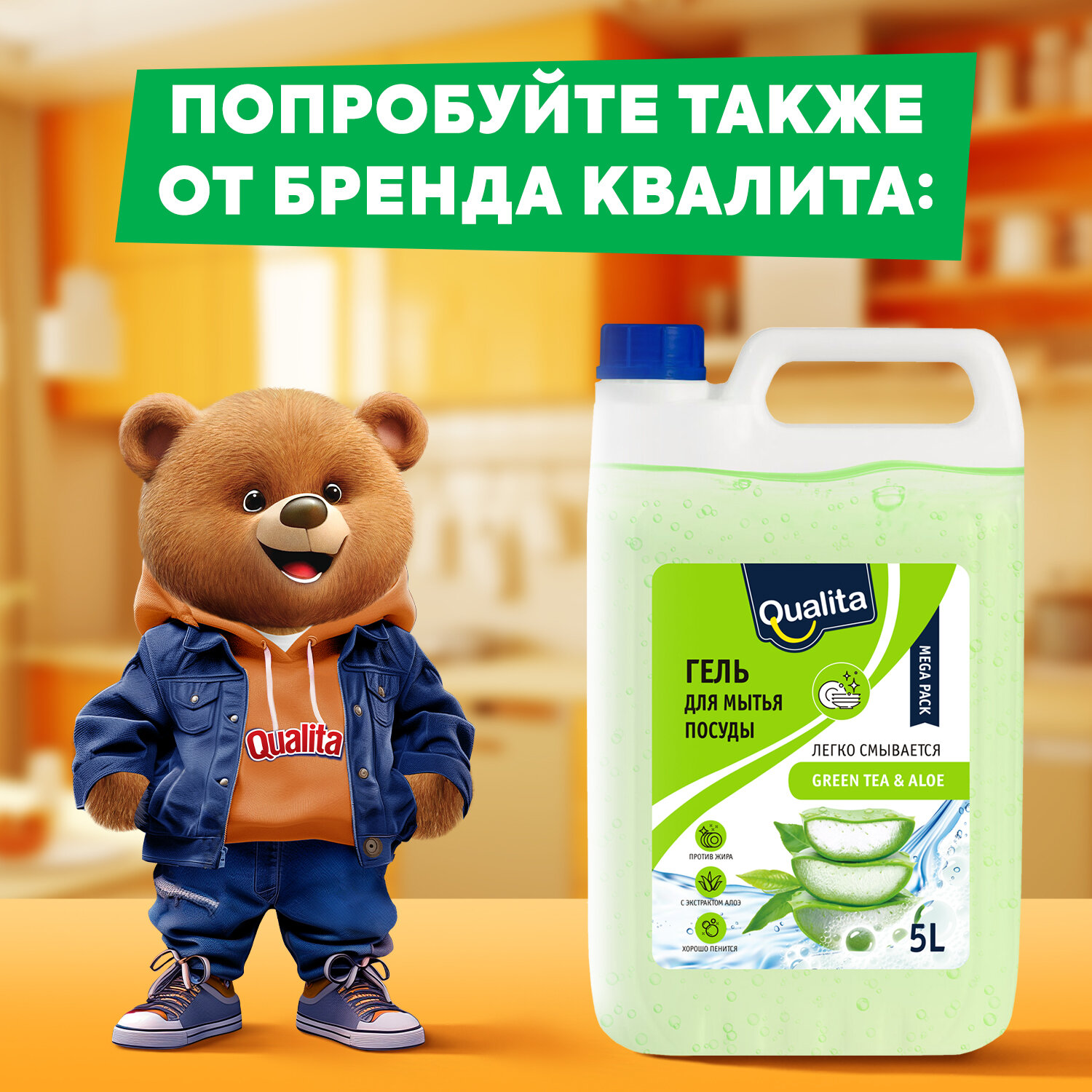 Средство для мытья посуды Qualita Lemon-Orange, 5л - средство для мытья посуды идеально подходит для ручного мытья всех видов посуды. Благодаря комплексу из трех ПАВ растительного происхождения, это средство легко справляется с загрязнениями даже при использовании холодной воды. Преимущества этого геля не ограничиваются только его отличными моющими свойствами. Гель для мытья посуды также образует обильную пену и экономно расходуется. Кроме того, легко смывается с посуды, не оставляя запаха и красителей, даже на пористых структурах. Средство для мытья посуды Qualita Lemon&Orange содержит экстракт цитрусовых, который обеспечивает мягкое и деликатное воздействие, не раздражает и не сушит кожу рук. Более того, 90% ингредиентов этого продукта имеют натуральное происхождение, что делает его еще более безопасным и экологически чистым выбором для вашей кухни. Упаковка средства для мытья посуды Qualita Lemon&Orange также заслуживает внимание. Ее удобный дой-пак был разработан с целью уменьшить использование пластика на 75% по сравнению с традиционными флаконами.