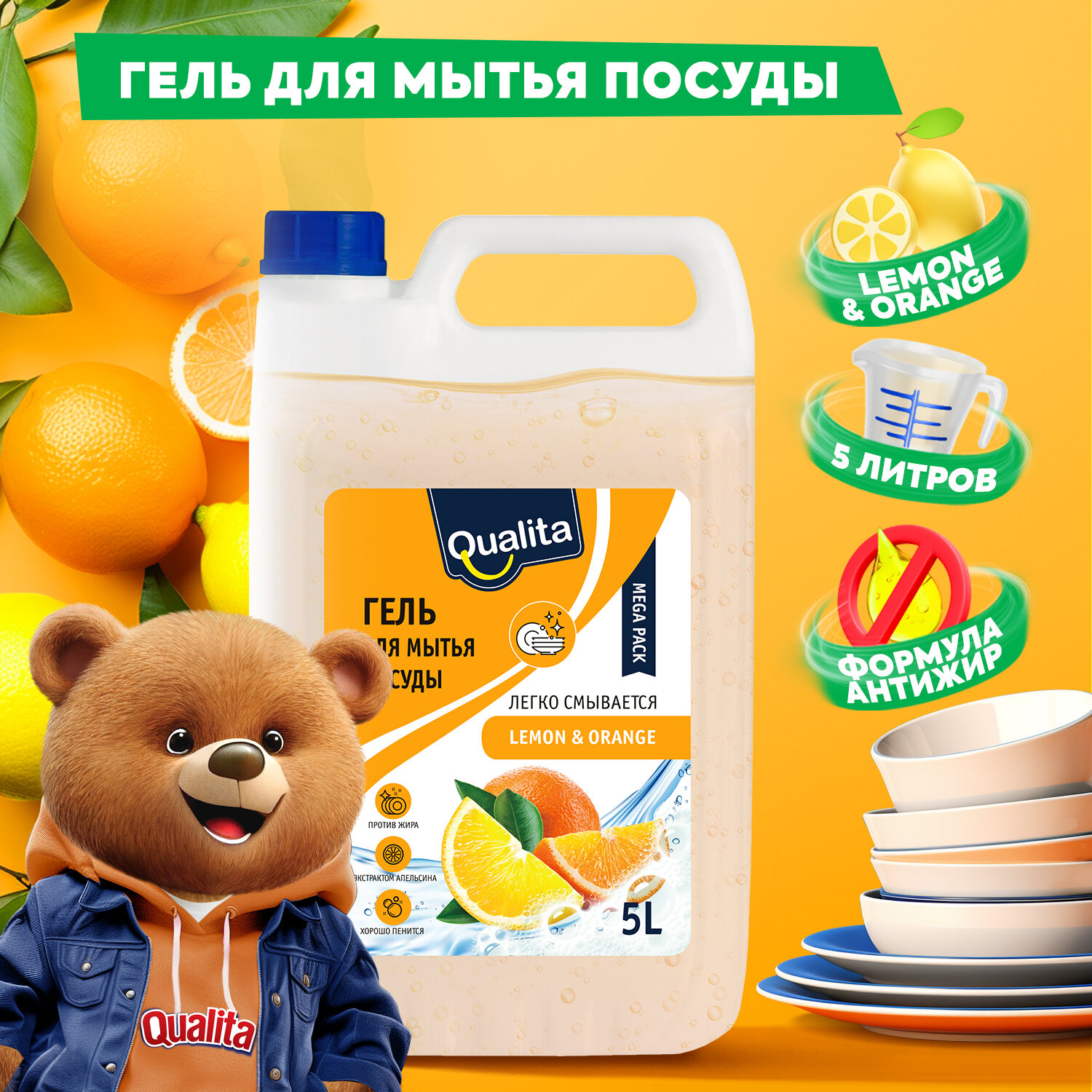 Средство для посуды Qualita lemon & orange 5л