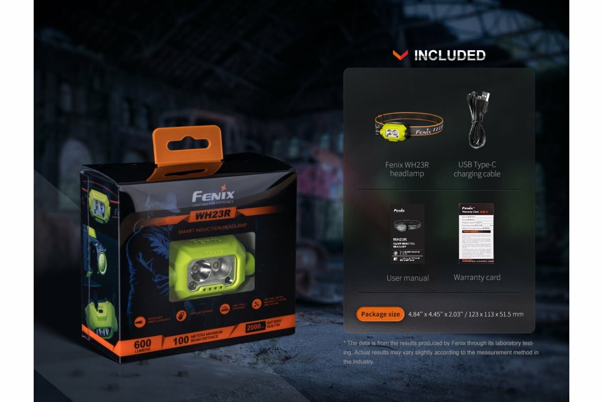 Универсальный фонарь WH23R даёт наибольший световой поток 600 люменов с расстоянием действия луча 100 метров. Комбинированную поворотную кнопку можно быстро и точно применять даже в перчатках или с замерзшими пальцами, чтобы установить желаемый режим и яркость. Дополнительные особенности дизайна WH23R включают встроенную батарею ёмкостью 2000 мАч, порт зарядки USB Type-C, четыре синих светодиодных индикатора, демонстрирующих оставшийся заряд батареи, и перфорированную структуру оголовья, обеспечивающую лучшую воздухопроницаемость и удобство. Для работы здесь применяются два светодиода Lumileds со сроком службы 50 тысяч часов. Заряжается посредством USB Type-C, полтора часа понадобится для полной зарядки. Ударопрочность: 2 метра. Стандарт защиты от пыли и влаги: IP66. световой поток: 600 люменов; дальнобойность луча: 100 метров; светит на диодах Lumileds со сроком службы 50 тысяч часов; питается от встроенного аккумулятора емкостью 2000 мАч; заряжается через USB Type-C; 7 уровней яркости; индикация уровня заряда; функция распознавания жестов; защищён от перегрева корпуса; функция уведомления о низком напряжении; габариты: 86,45*45*43,72 миллиметра; ударопрочность: 2 метра; стандарт защиты от пыли и влаги: IP66; вес составляет 115 грамм, учитывая вес батареи. Комплектация: модель фонаря Fenix WH23R, зарядный кабель USB Type-C, инструкция, талон гарантии.