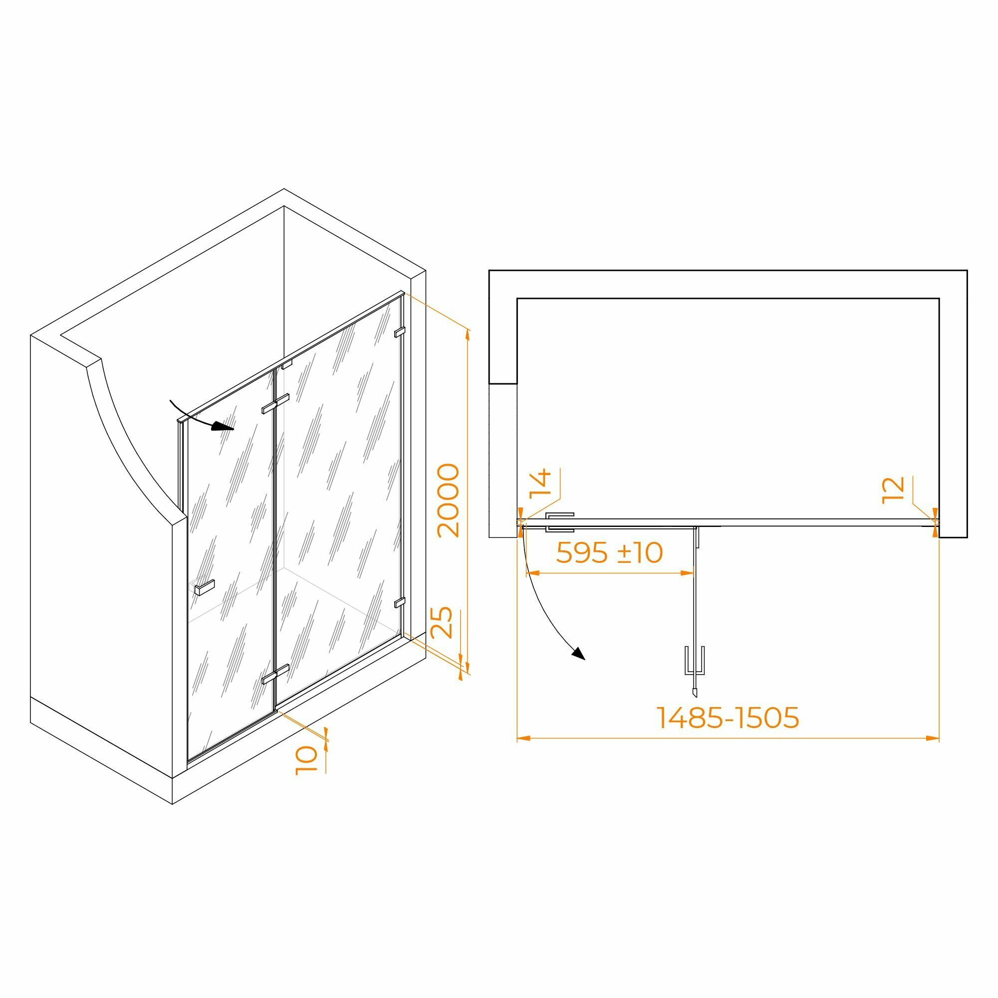 - Размеры с диапазоном регулировок (ШхВ): 1485-1505х2000 мм.