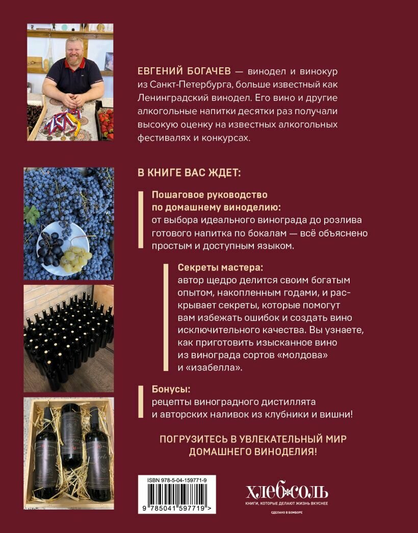 - Секреты мастера: автор щедро делится своим богатым опытом, накопленным годами, и раскрывает секреты, которые помогут вам избежать ошибок и создать вино исключительного качества. Вы узнаете, как приготовить изысканное вино из винограда сортов «Молдова» и «Изабелла».