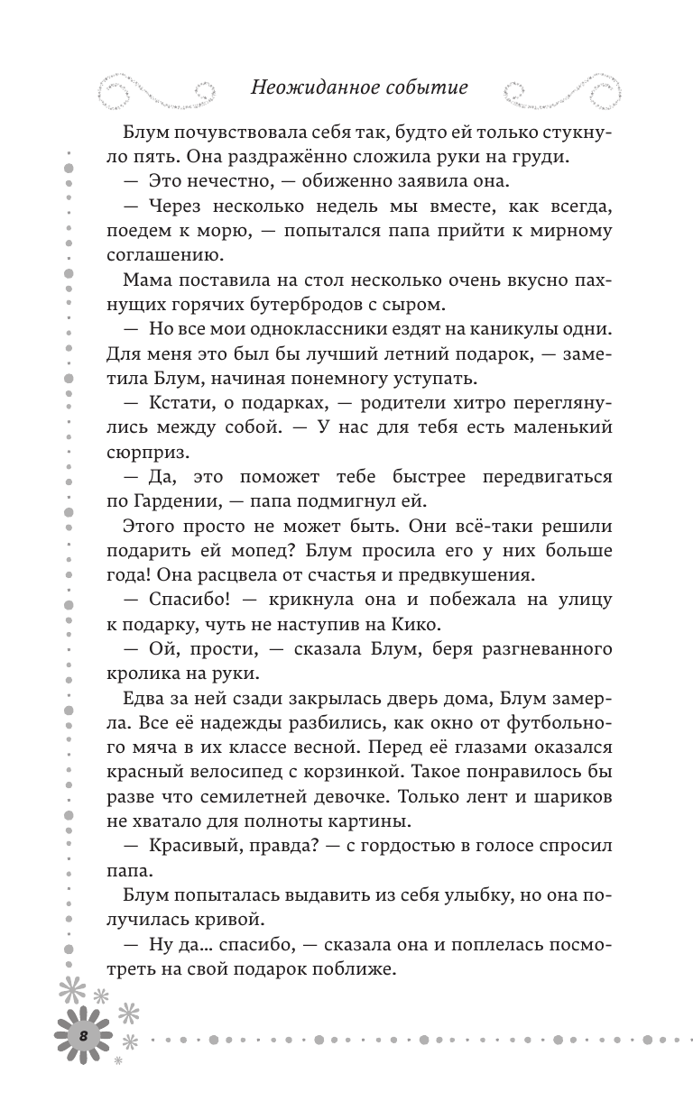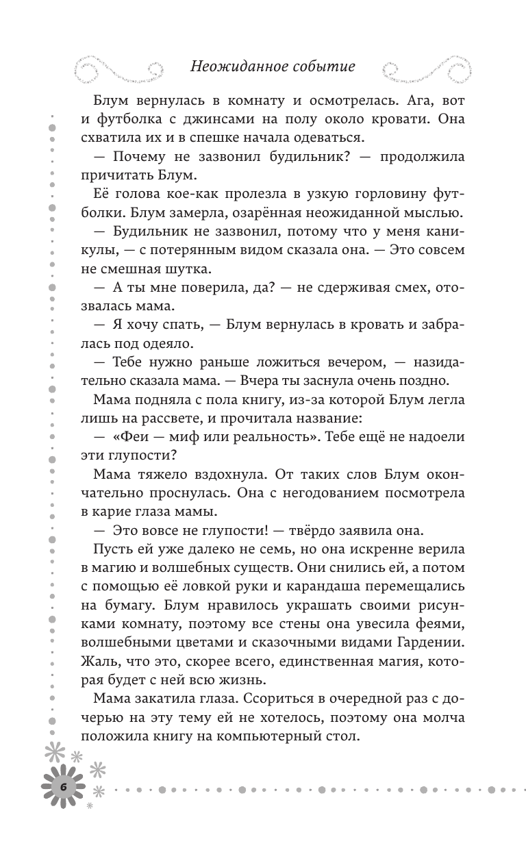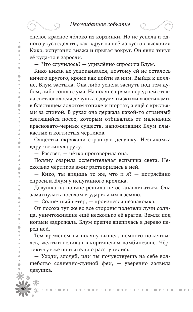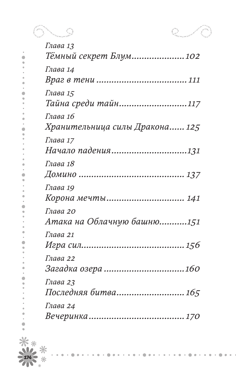 В этой книге вас ждет пересказ первого сезона мультсериала, вставки с интересными фактами и цветные вклейки из мультика, ну и, конечно же, Блум, Флора, Стела, Муза, Текна.