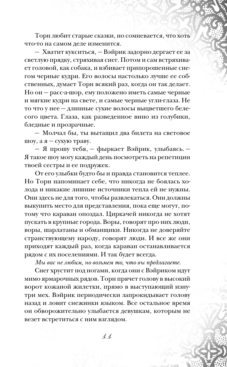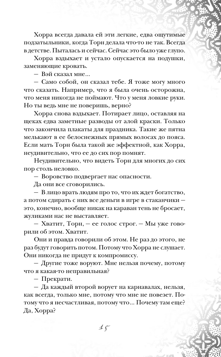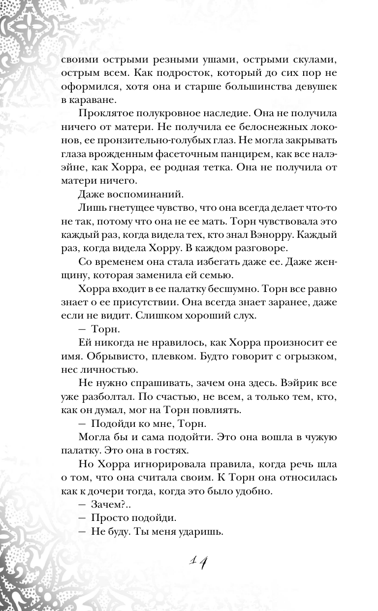 Торн — полукровка, дитя кровожадного чудовища и растерзанной им женщины. Она путешествует вместе с караваном, но нигде не чувствует себя на своем месте. И когда над приютившей ее семьей нависает таинственная опасность, страх уводит Торн в глубины чащи, из которой еще никто не возвращался.