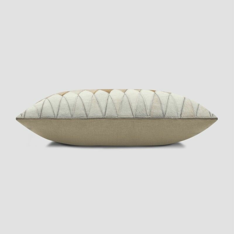 Декоративная подушка «Аррире» изготовлена из редкой кожи буйвола с лицевой стороны, с обратной – из натурального хлопка.Буйволовая кожа – прочный, устойчивый к механическим воздействиям и влагостойкий материал, который прекрасно подходит для создания разнообразных аксессуаров.Модель «Аррире» выполнена в этническом стиле. Из необработанной кожи буйвола создана красивая мозаика из ромбов в нескольких оттенках коричневого, бежевого и сливочного. Плавный переход тонов орнамента создает красивый эффект деграде – переливы от светлых к более насыщенным цветам. Несколько таких выразительных подушек в комнате сделают обстановку неординарной, добавят индивидуальности и этнический ноток.