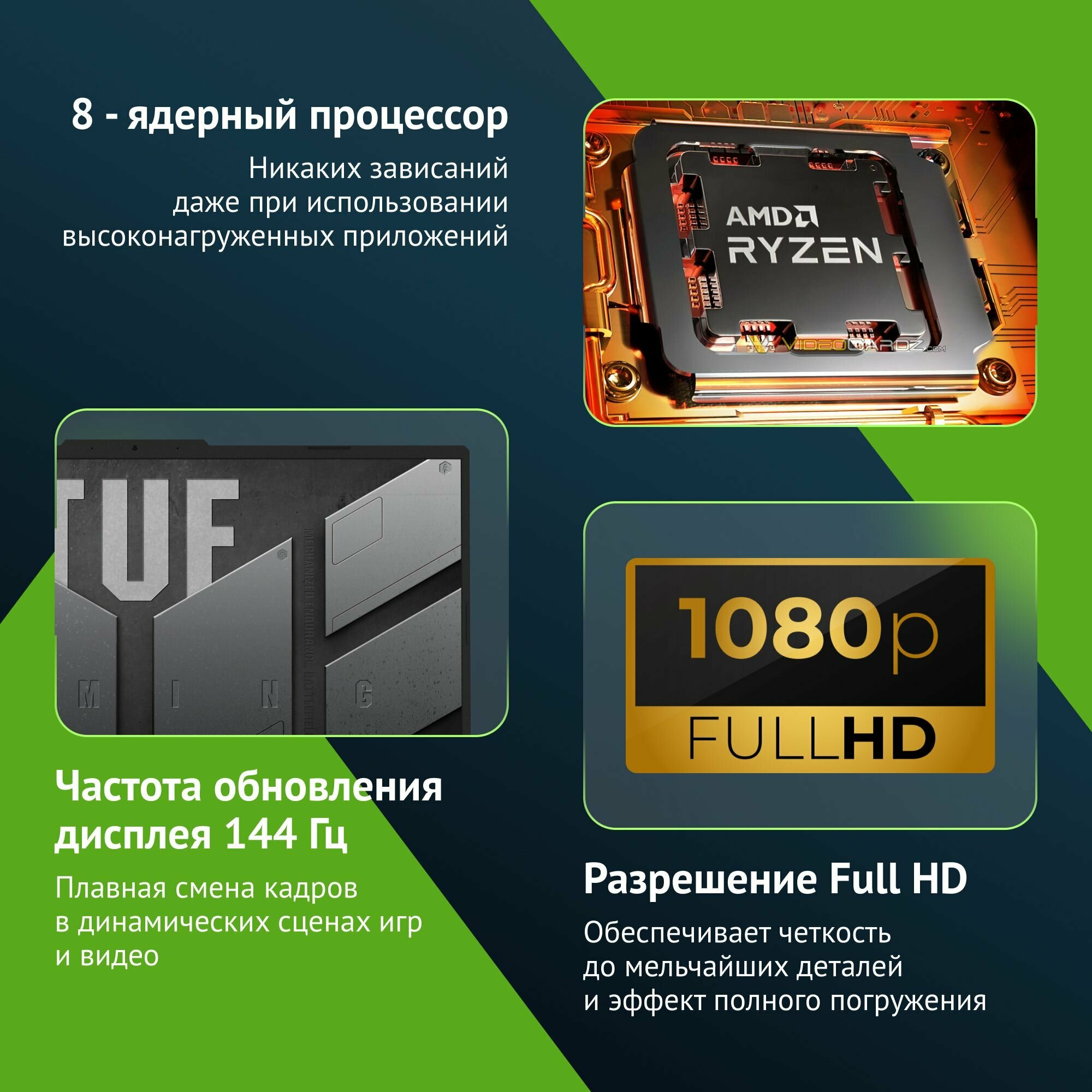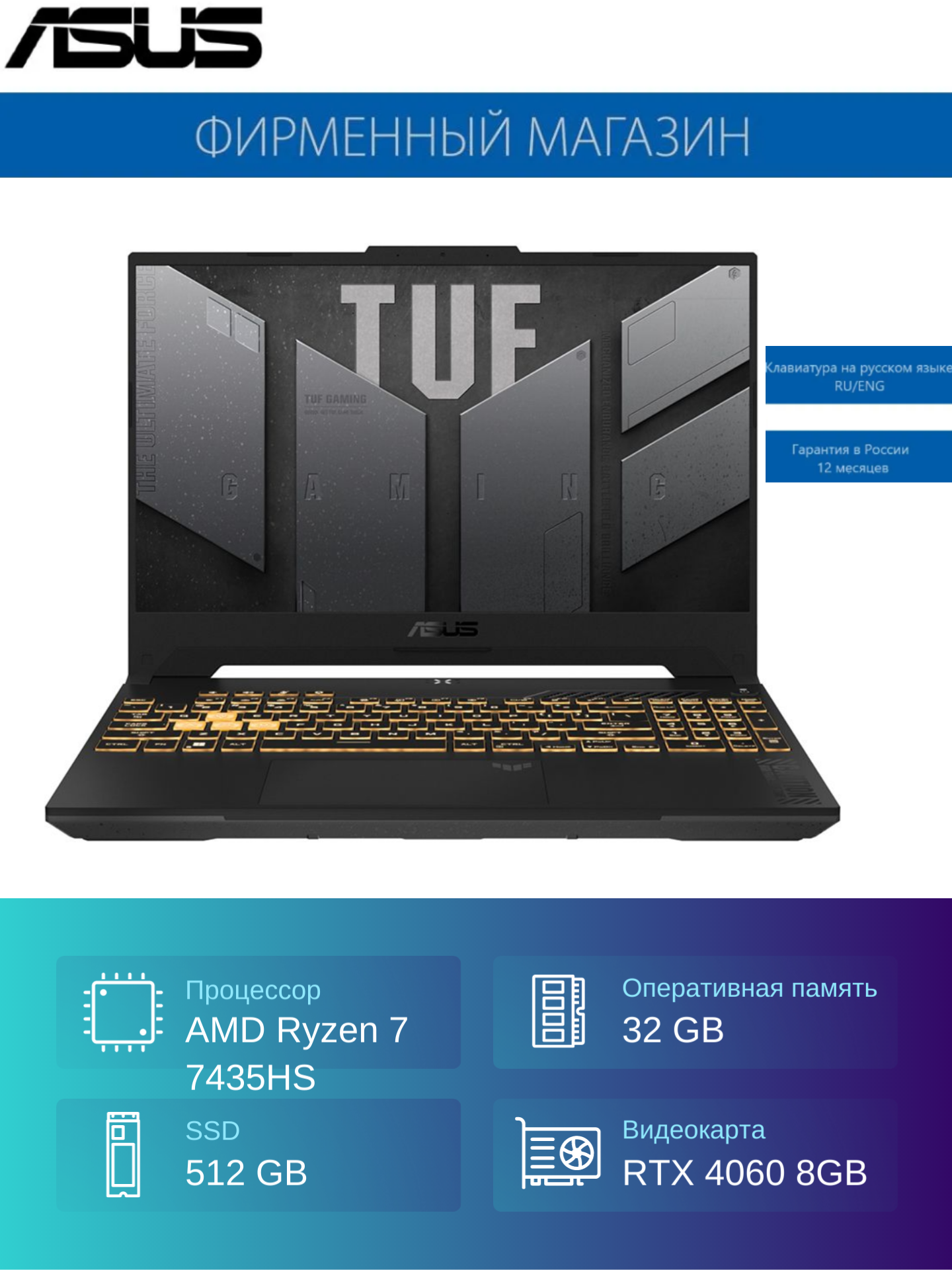 Ноутбук ASUS TUF Gaming A15 2023 FA507NVR-LP040 90NR0JK5-M00230 (15.6" Ryzen 7 7435HS 16Gb/ SSD 512Gb GeForce® RTX 4060 для ноутбуков) Серый