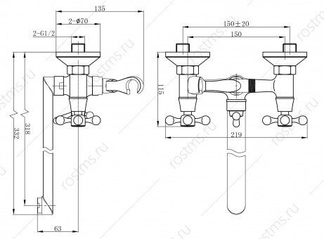 Смеситель для ванны с душем РМС хром РОСТОВСКАЯ МАНУФАКТУРА САНТЕХНИКИ SL71-143P