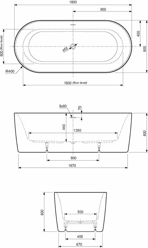 Модель: Metauro 180х80 METAURO-INT-Central-180-80-60-B-W-MATT черная матовая