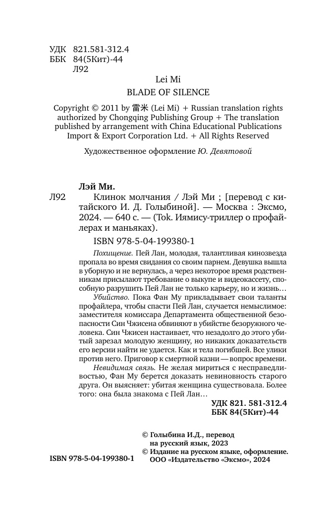 Книга: Клинок молчания (Лэй Ми); Эксмо, 2024