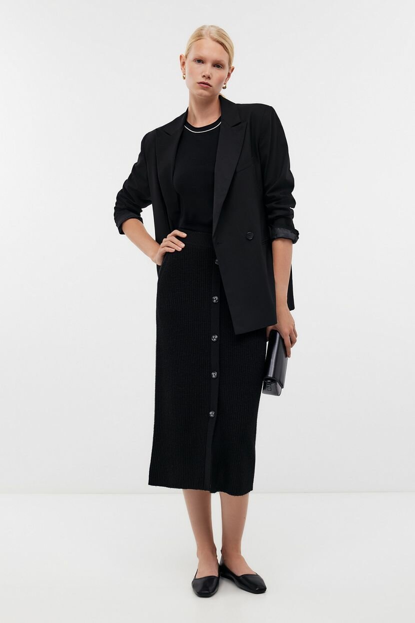 Юбка длины миди - горячий тренд сезона, который выбирают ценительницы удобства и качества. Ее легко стилизовать и включать в повседневные образы и аутфиты для офиса благодаря лаконичности и универсальному цветовому решению. Эластичный пояс в тон фиксирует изделие на талии. Модель облегающего силуэта красиво садится по фигуре. Декорирована черными контрастными пуговицами, которые имитируют застежку спереди. Трикотажная одежда обладает эластичностью и дарит свободу движений. Она выполнена из приятной к телу пряжи с добавлением теплой шерсти ангоры. Вискоза обеспечивает дышащие свойства. Синтетические волокна помогают длительно сохранить форму. Упругий трикотаж практически не мнется и прост в уходе.