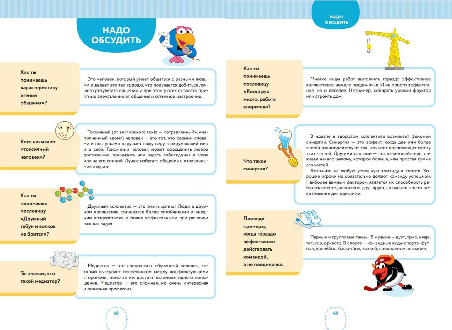 • «Надо обсудить» — вопросы для совместного обсуждения.