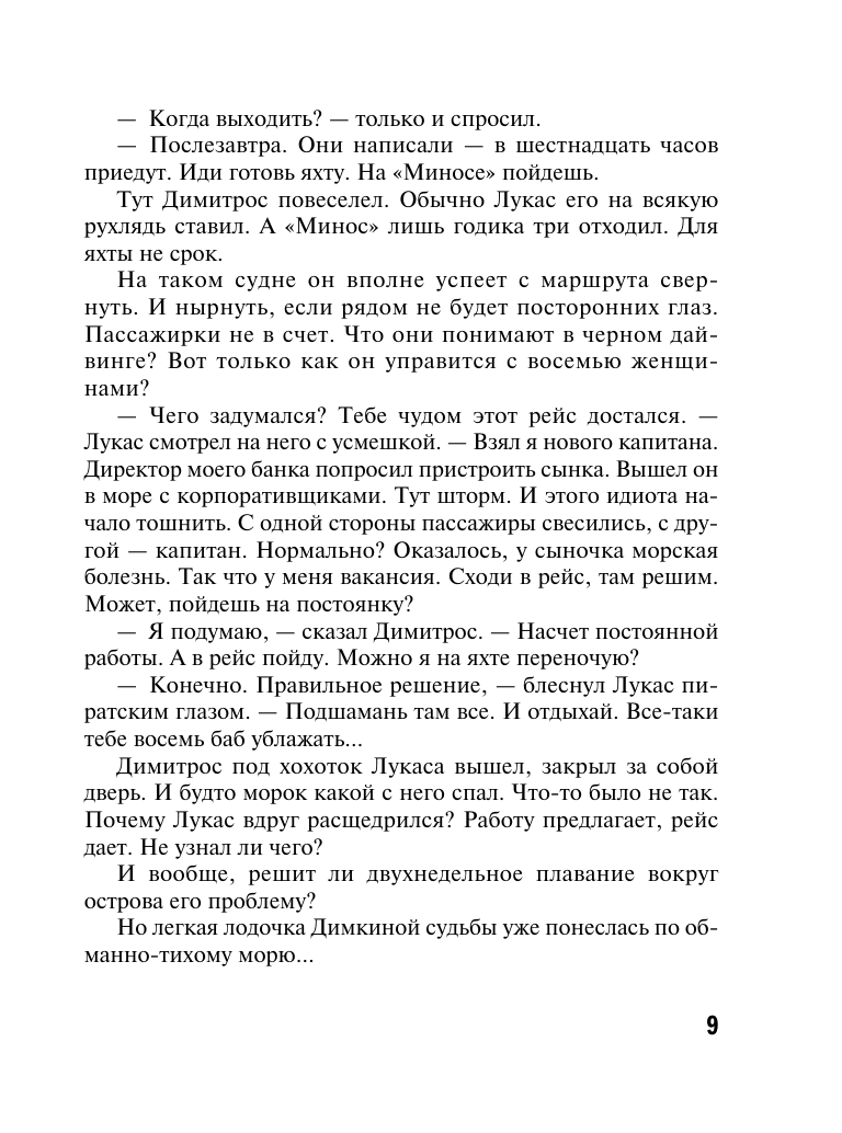 Две подруги — журналистка Маша и врач Лена — отправляются в оздоровительный круиз на яхте вокруг острова Крит в компании очень странных пассажирок. Во время плавания выясняется, что у молодого капитана Димитроса есть тайна: он нашел затонувший древний корабль и достал оттуда украшение — золотое ожерелье минойской верховной жрицы. Сразу несколько человек включаются в охоту за кладом. А с яхты начинают таинственно исчезать отдыхающие…