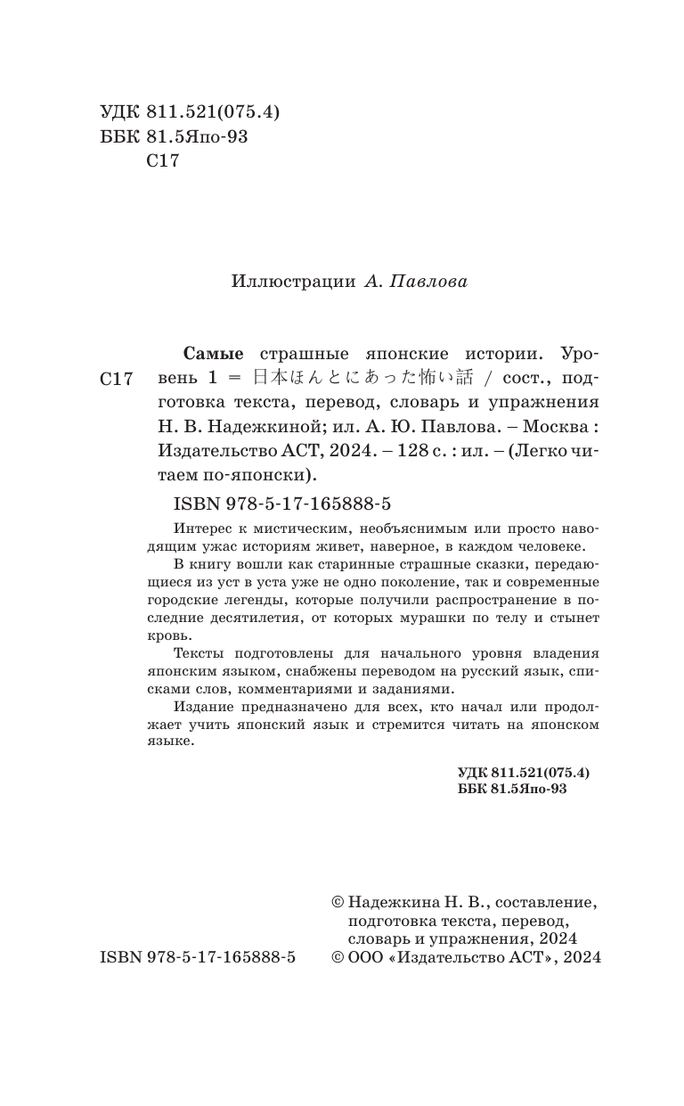 Самые страшные японские истории. Уровень 1 = Nihon honto ni atta kowai hanashi (Надежда Владимировна Надежкина); АСТ, 2024
