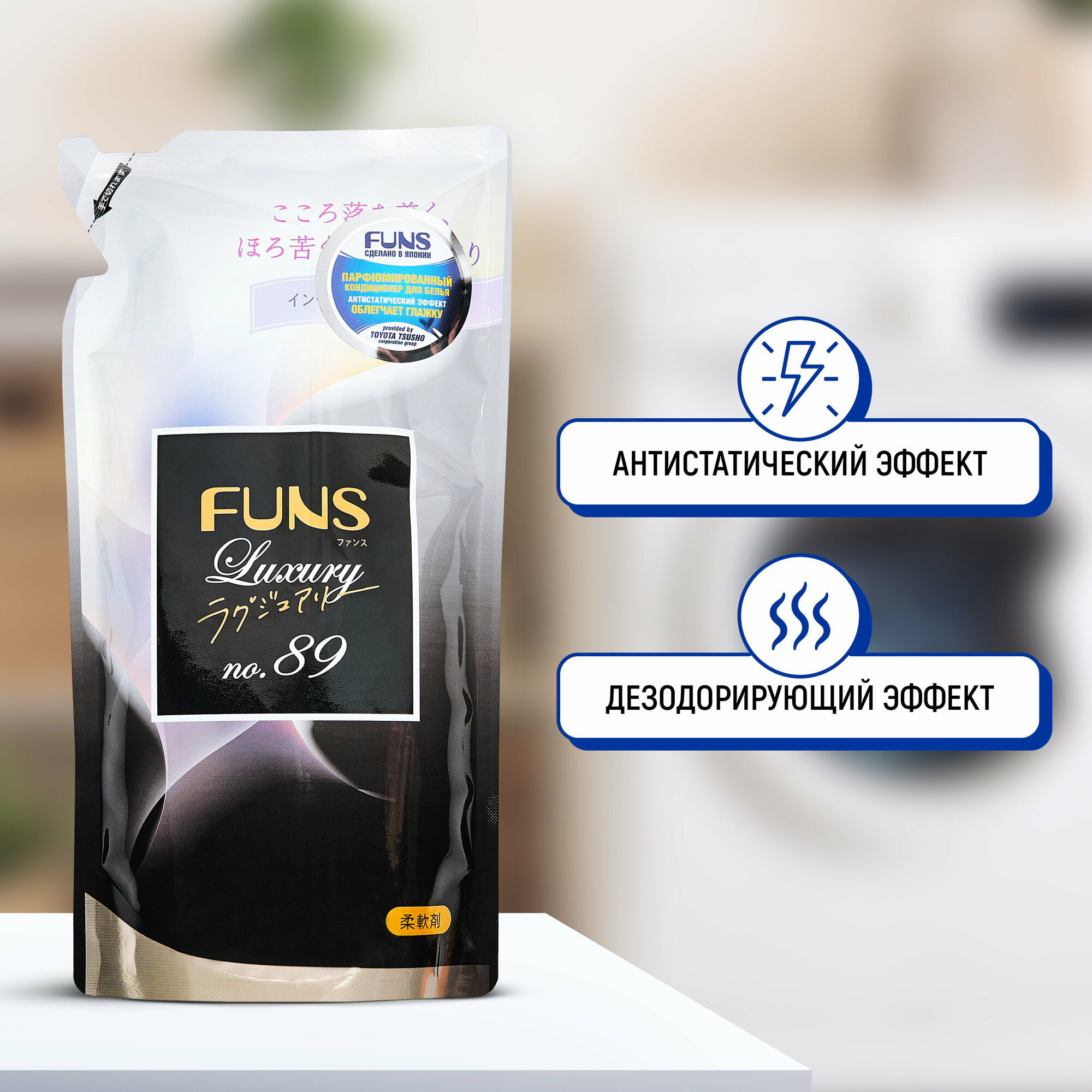 Кондиционер для белья Funs Сандал и бергамот делает вещи мягкими и предотвращает образование катышков. Он также снимает статическое электричество и упрощает процесс глажки. После использования кондиционера бельё надолго сохраняет лёгкий аромат бергамота и сандала. Средство подходит для всех видов тканей, включая шерсть и шёлк, и для стирки белых, чёрных и цветных вещей. Рекомендуется для ручной и машинной стирки.