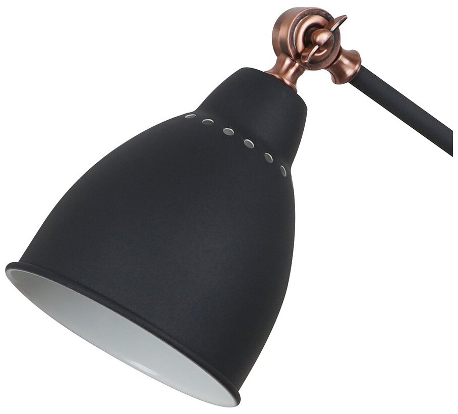 Настольная лампа Arte Lamp из коллекции Braccio Black. В конструкции настольной лампы используется один черный металлический плафон овальной формы и металлическая арматура цвета черный. Габаритные размеры настольной лампы 540x480x180 мм. Дизайн настольной лампы отлично подходит для офиса. Устанавливается на стол.