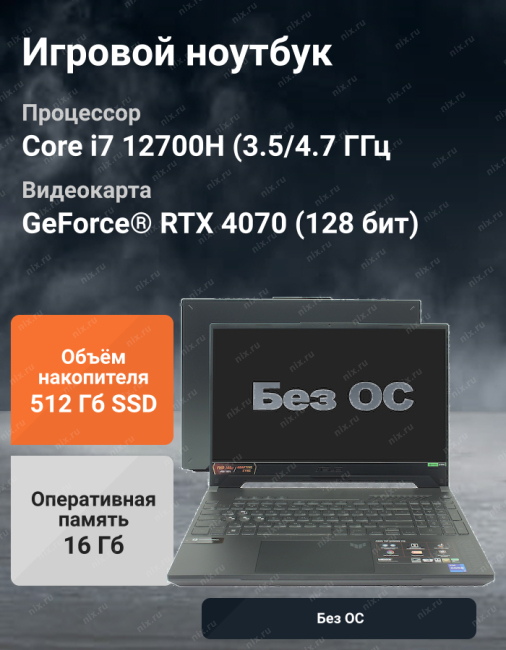 | Видеокарта | NVIDIA GeForce RTX 4070 |
