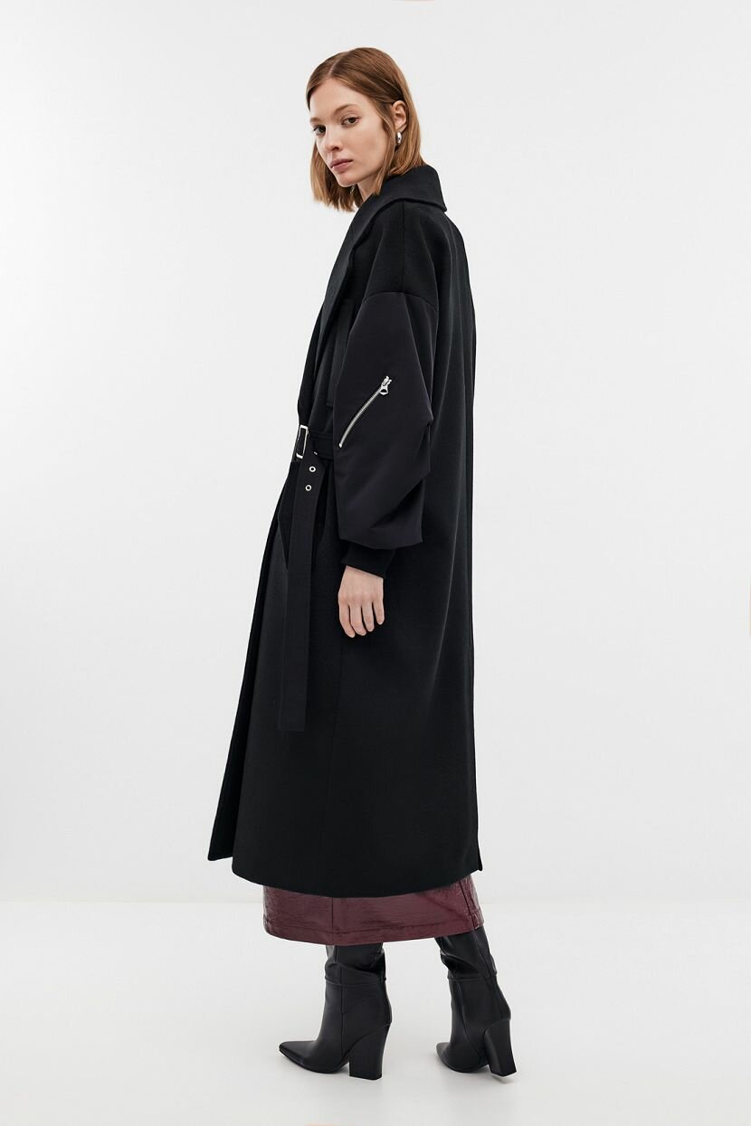 Пальто женское прямого силуэта с приспущенным плечом. Широкий воротник с лацканами добавляет элегантности и стильности образу. Пальто декорировано карманами с клапаном и листочками, что подчеркивает практичность и удобство использования. Полупояс с пряжкой регулирует посадку и подчеркивает талию, создавая утонченный силуэт.Классический V-образный воротник без капюшона придает изделию строгий и лаконичный вид. Длинные спущенные рукава обеспечивают комфорт и свободу движения, идеально подходя для повседневной носки в прохладное время года. Материалы высокого качества гарантируют долговечность и приятные тактильные ощущения.Приспущенное плечо создает расслабленный образ, сочетая в себе классику и современные тренды. Такое пальто станет универсальным элементом гардероба, дополняя как деловой, так и повседневный образ.