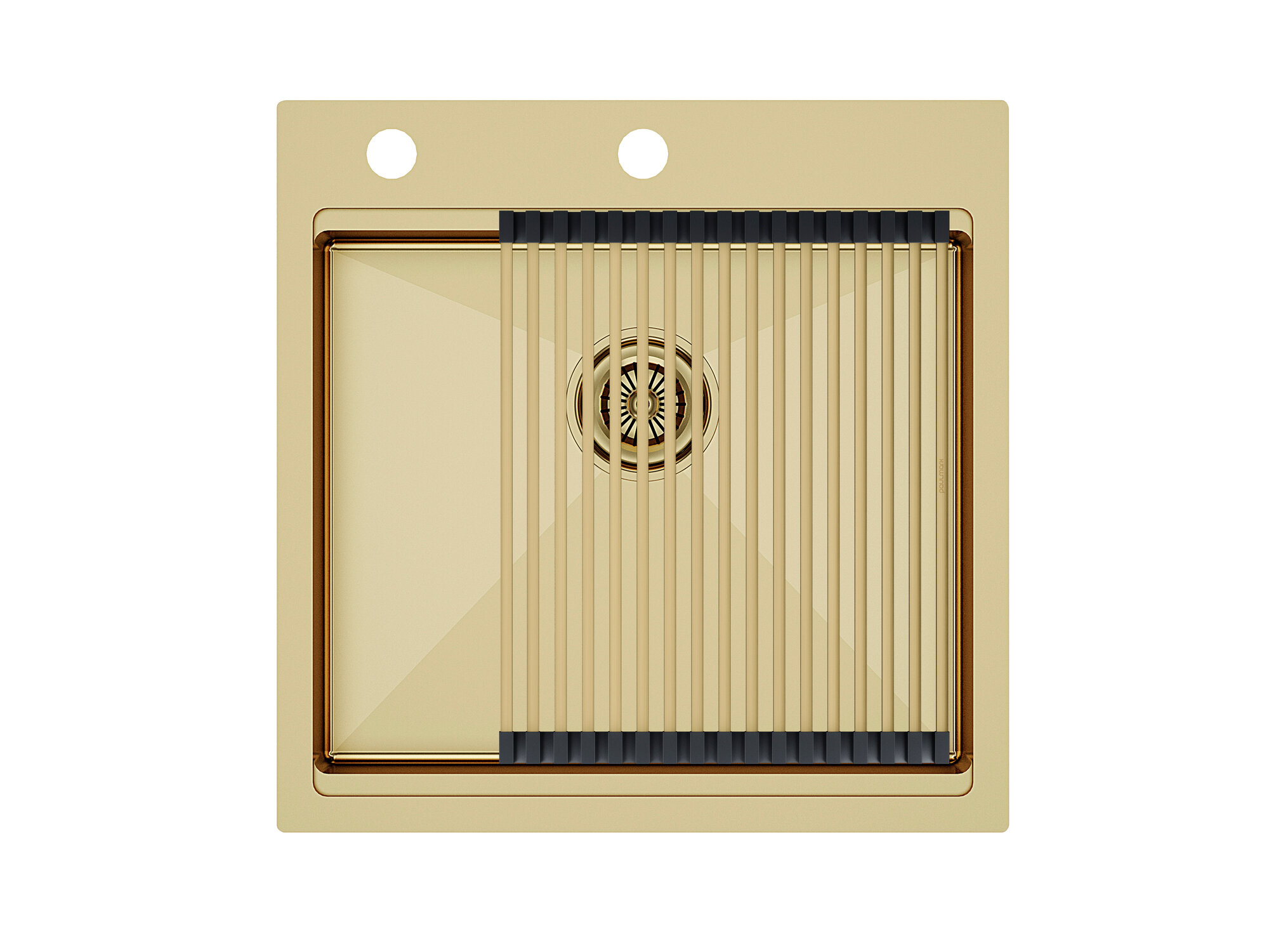 Сервис сравнения цен СкидкаГИД предлагает сравнить цены на товар «Кухонная мойка нержавеющая Paulmark KRONER-PRO 51+PRO PM705151-BG+R405-BG 51 см брашированное золото с ролл-матом»