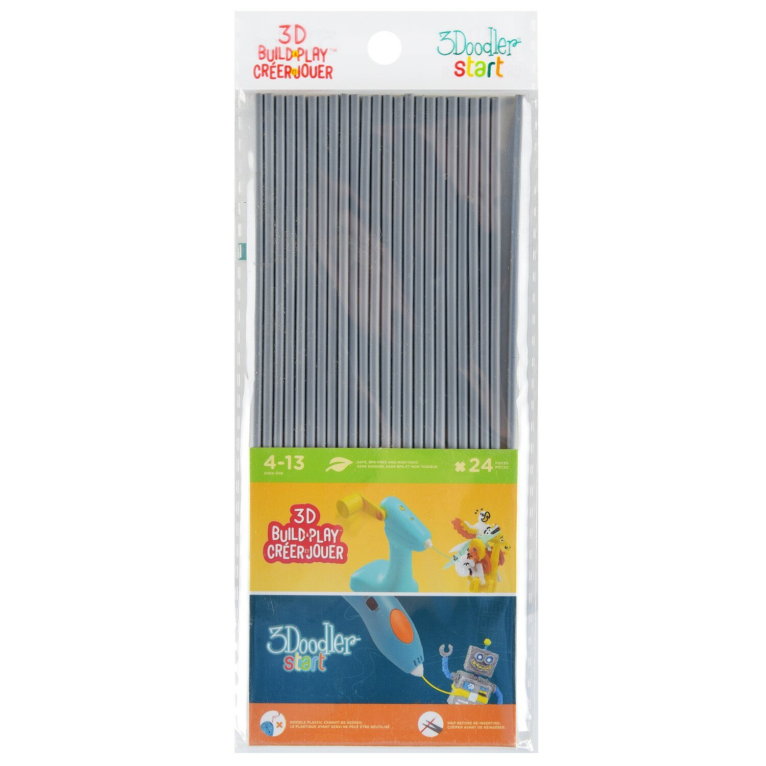 Эко-пластик к 3Д ручке 3DOODLER START серый 24 шт 3DS-ECO08-GREY-24