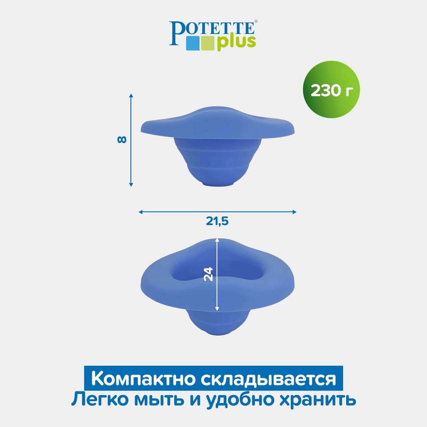 Многоразовая силиконовая вставка позволяет использовать горшок Potette Plus не только в дороге, но и дома. Вставка легко и быстро устанавливается внутрь горшка, имеет противоскользящую поверхность и легко моется.