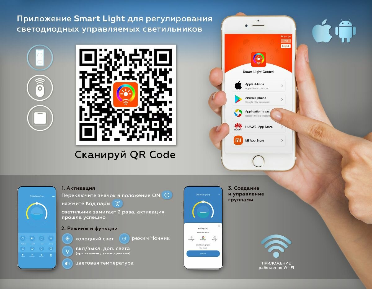 | Цветовая температура | 3000K (теплый свет) - 6400K (холодный свет) |