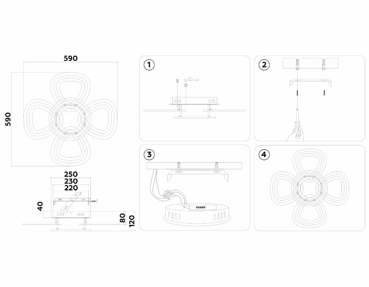 | Номенклатура | FA8925/4+1 WH/CH белый/хром 163W 3000K-6400K 590*590*120 (ПДУ РАДИО 2.4G) |