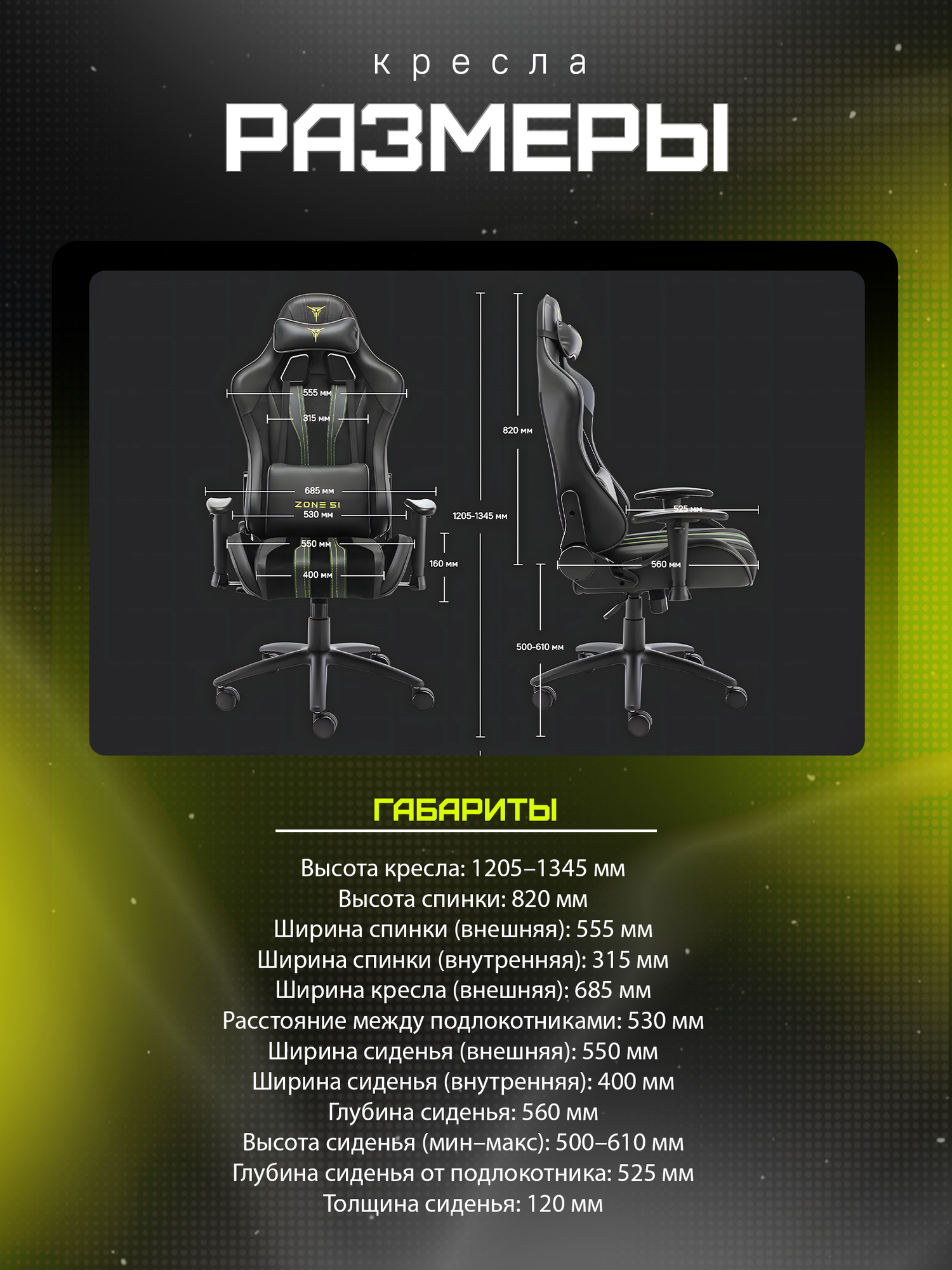 | Высота кресла (мин), мм | 1200 |