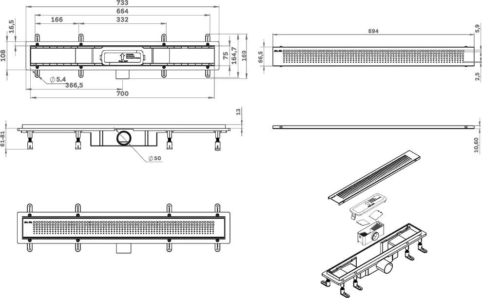 Душевой трап Am.Pm PrimeFlow W02SC-P11-070-01 BM169х733 см черный W02SC-P11-070-01BM