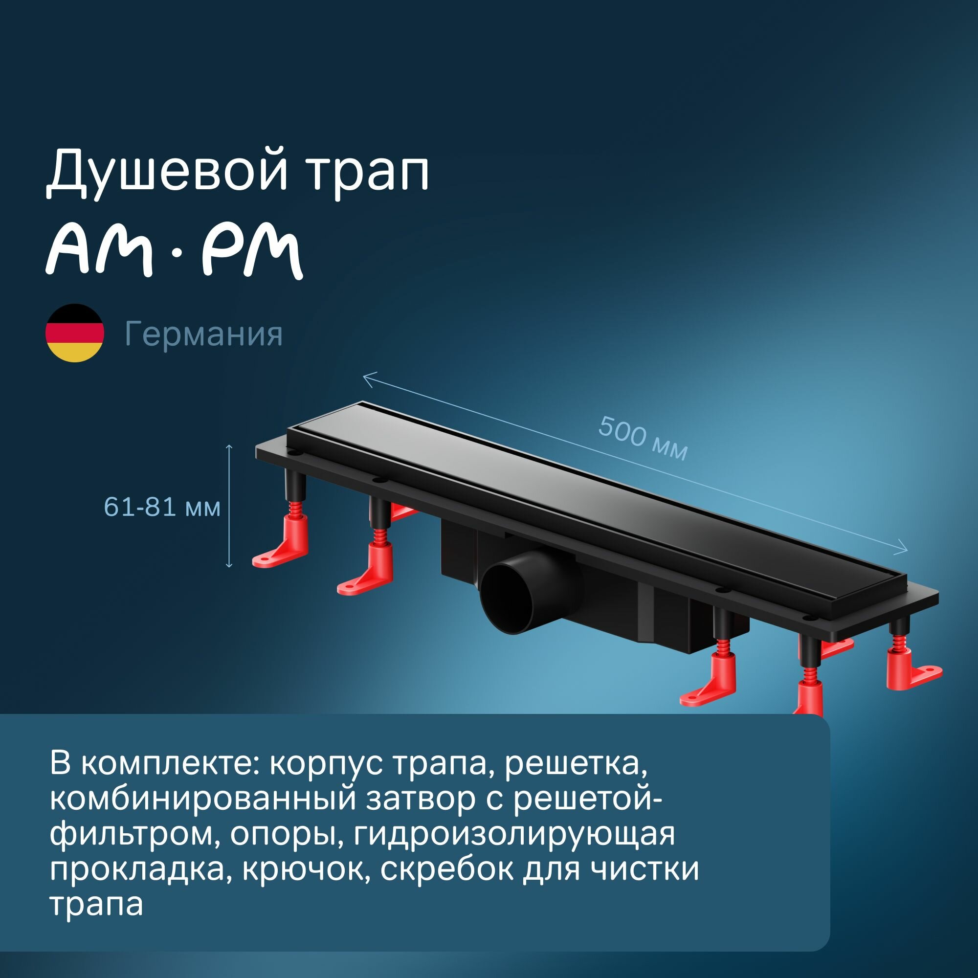 Душевой трап Am.Pm PrimeFlow W02SC-U11-050-04 BM169х533 см черный W02SC-U11-050-04BM