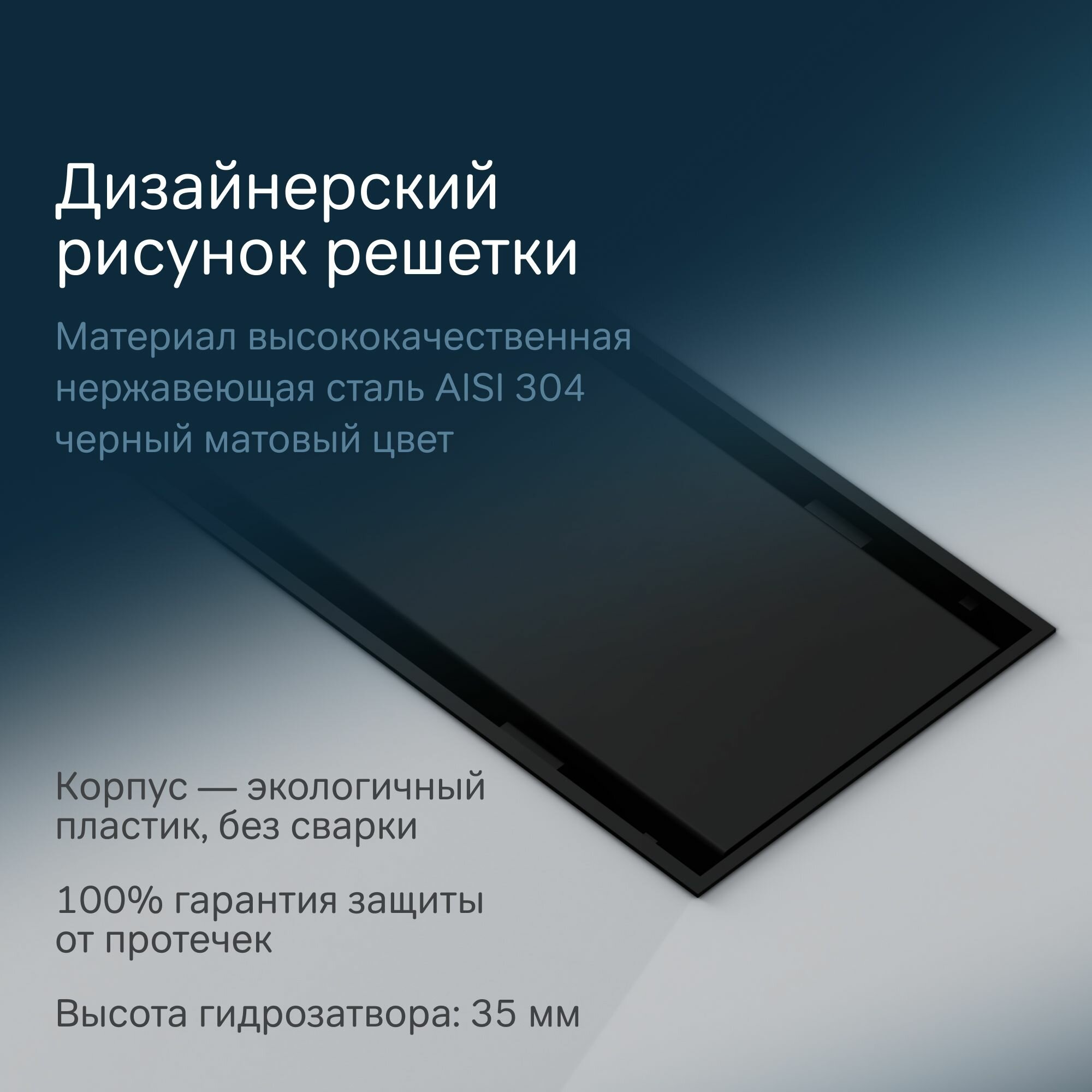 Непревзойденный ультрамодный дизайн, детально проработанная форма изделия, точные выверенные линии. Представляем инновационный трап для душа PrimeFlow. Универсальная двухсторонняя решетка трапа может быть использована как самостоятельная декоративная вставка, либо как база для вклейки плитки. Невероятно высокая скорость слива - 45 л/мин благодаря двухкамерному комбинированному затвору. Надежность и долговечность изделия. Легкое обслуживание трапа: простая разборка и чистка сифона. Продукт обладает низкой высотой монтажа и возможностью регулировки, что предполагает экономию бюджета при заливке пола. Трап имеет инновационную конструкцию решетки с фильтром, что значительно увеличивает межсервисный интервал. Размер изделия 50 см. Дизайн продукта выполнен в элегантном черном матовом цвете.