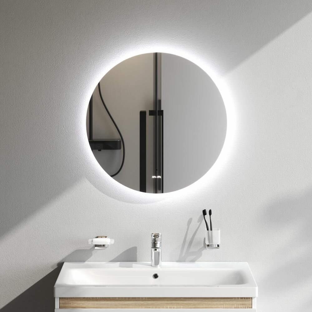 Расширение размерной линейки зеркал AM.PM. Зеркало с LED-подсветкой и бесконтактным сенсором в размере 60 см.Зеркало с интерьерной LED-подсветкой. Стильное решение для ванной комнаты. Визуальный эффект ""парящего"" зеркала добавляет интерьеру легкости и изящества. Подсветка естественного дневного цвета не искажает отражение. Зеркальное полотно от ведущего европейского производителя зеркал AGC. Изделие имеет высокую степень защиты от попадания капель воды брызг. Край зеркального полотна обработан еврокромкой что обеспечивает надежную защиту от случайных порезов при контакте с изделием.Бесконтактный сенсорный выключатель Touchless никаких отпечатков на зеркальном полотне! Свет включается легким взмахом руки. Функция диммирования позволяет регулировать яркость жестом.КомплектацияЗеркало, подсветка, крепление к стене, инструкция