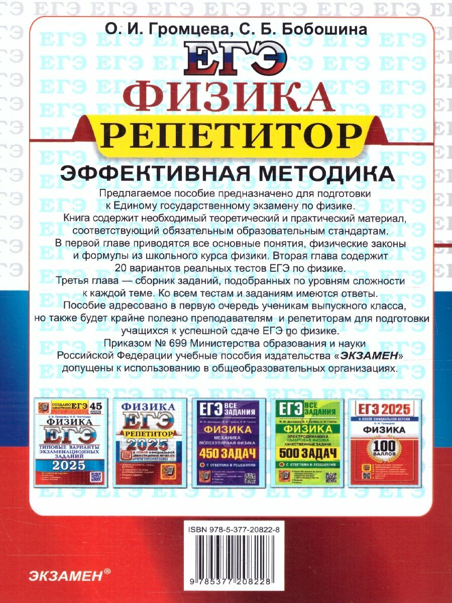 ЕГЭ 2025. Физика. Репетитор. Эффективная методика (Бобошина Светлана Борисовна, Громцева Ольга Ильинична); Экзамен, 2025