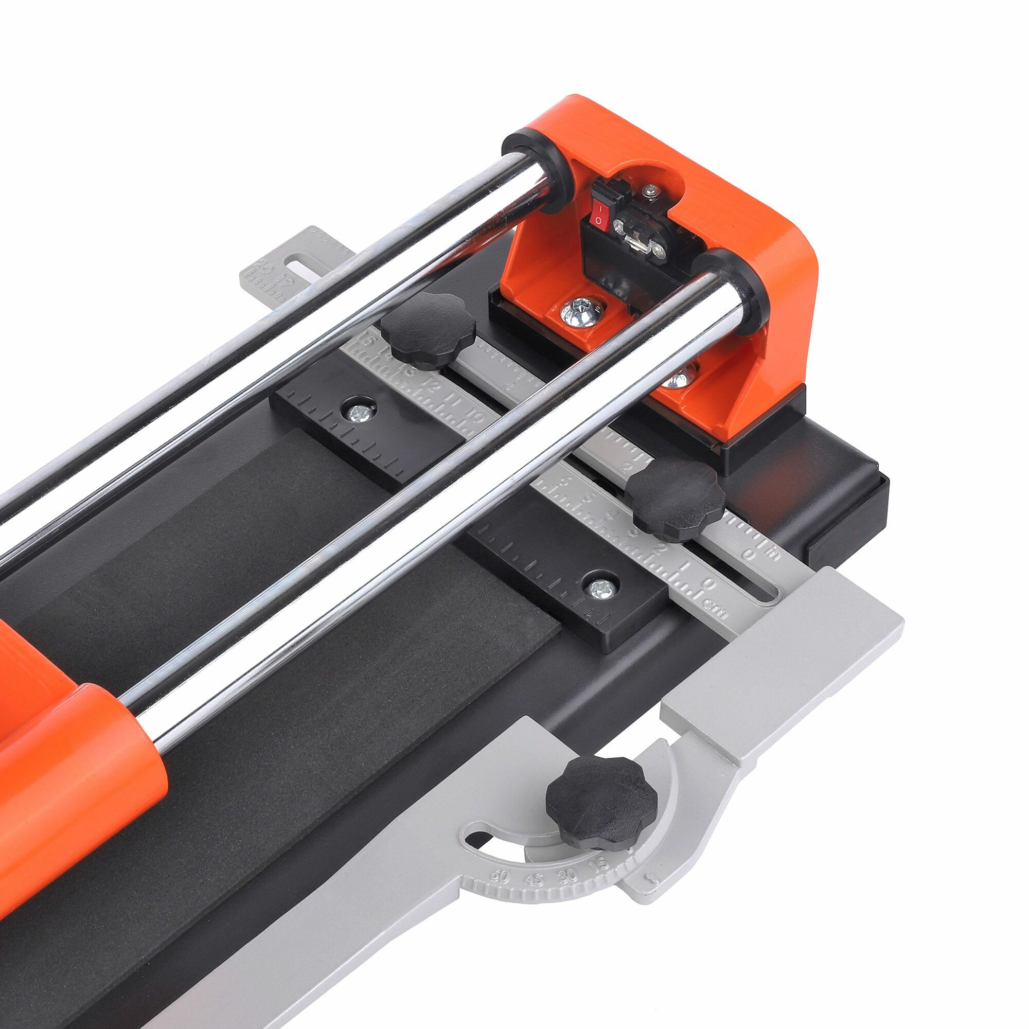 Рельсовый плиткорез с двумя направляющими подходит для обработки плитки из различных материалов. Рельсы-направляющие изготовлены из хромированной стали с антикоррозийным покрытием. Для работы с крупногабаритными заготовками предусмотрена боковая поддержка; возможно расширение рабочей поверхности. Конструкция рукоятки исключает защемление рук и гарантирует устойчивость при резке. На эргономичной изогнутой ручке сделаны специальные углубления для пальцев. Рукоятка удобно размещается в руке и не выскальзывает при работе. Ручка обеспечивает равномерное распределение давления. Модель имеет линейку-угольник для резки плитки под углом 30-45-60°, регулировки размера, дополнительной фиксации отрезаемой заготовки и точного положения плитки. Это позволяет выполнять точный рез вне зависимости от выбранного материала. Несущая каретка с подшипниками осуществляет плавный ход. Полное отсутствие люфта между кареткой и рельсом. Лазерный указатель реза эффективен в работе и гарантирует высокую точность. Литая станина из алюминиевого сплава с обрезиненной рабочей поверхностью.