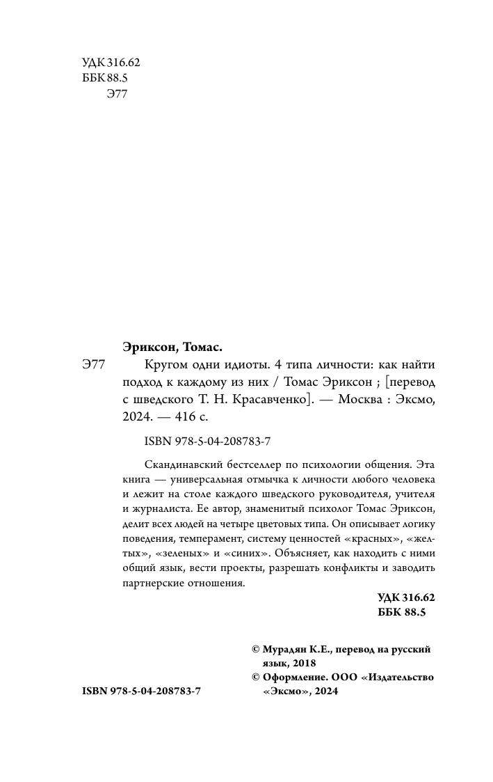 Кругом одни идиоты. 4 типа личности и как найти подход к каждому из них (Эриксон Томас); ООО "Издательство "Эксмо", 2024
