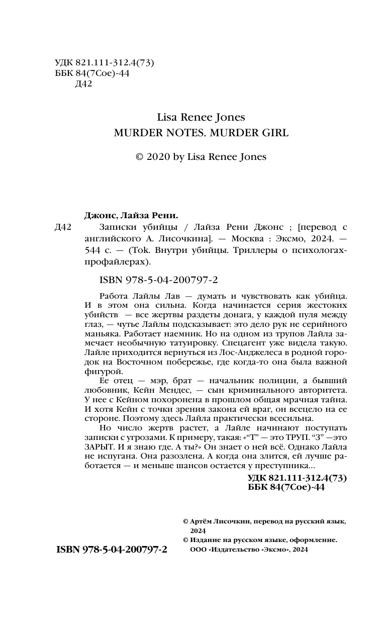 Книга: Записки убийцы (Лиза Рене Джонс); Эксмо, 2024