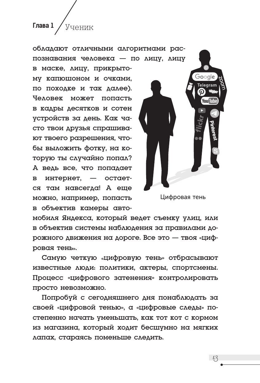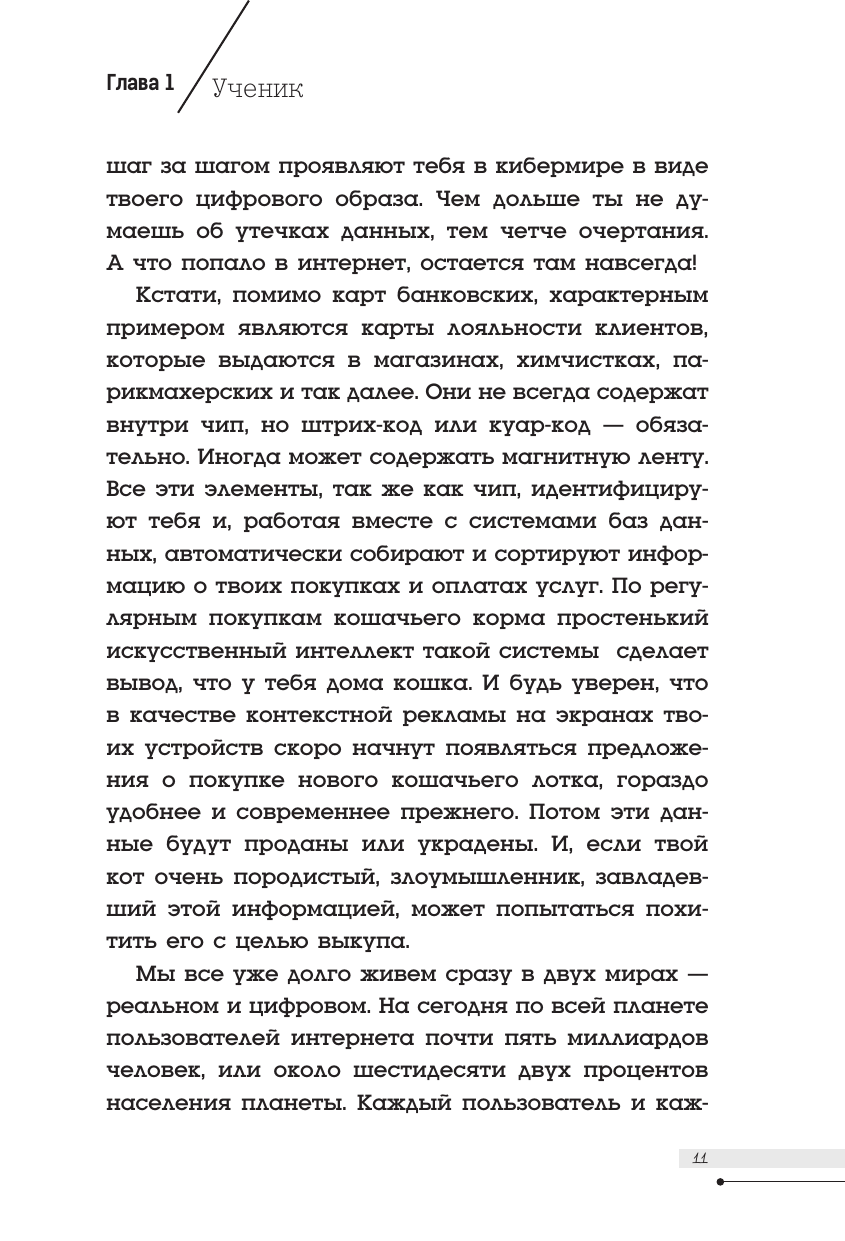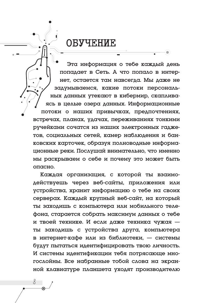 Эта книга состоит из двух частей: художественной, где рассказывается удивительная история мальчика, захотевшего стать белым хакером (хотя в ней, конечно же, есть и девочка, а также его друзья), и научно-популярной, в которой дается обучение (она так и называется в книге, ты увидишь ее, когда начнешь читать) программированию и разным другим компьютерным вещам, очень нужным в современном мире. Но на самом деле это единая история, позволяющая задуматься о добре и зле, не ошибиться в выборе правильной стороны и помогающая освоить способы защиты себя в бескрайнем мире интернета. Приключение и компьютерное обучение рука об руку! Для среднего и старшего школьного возраста.