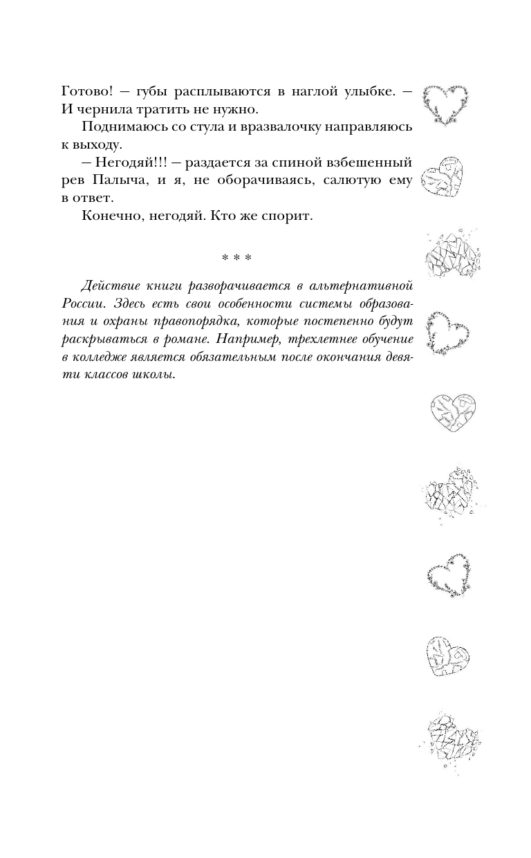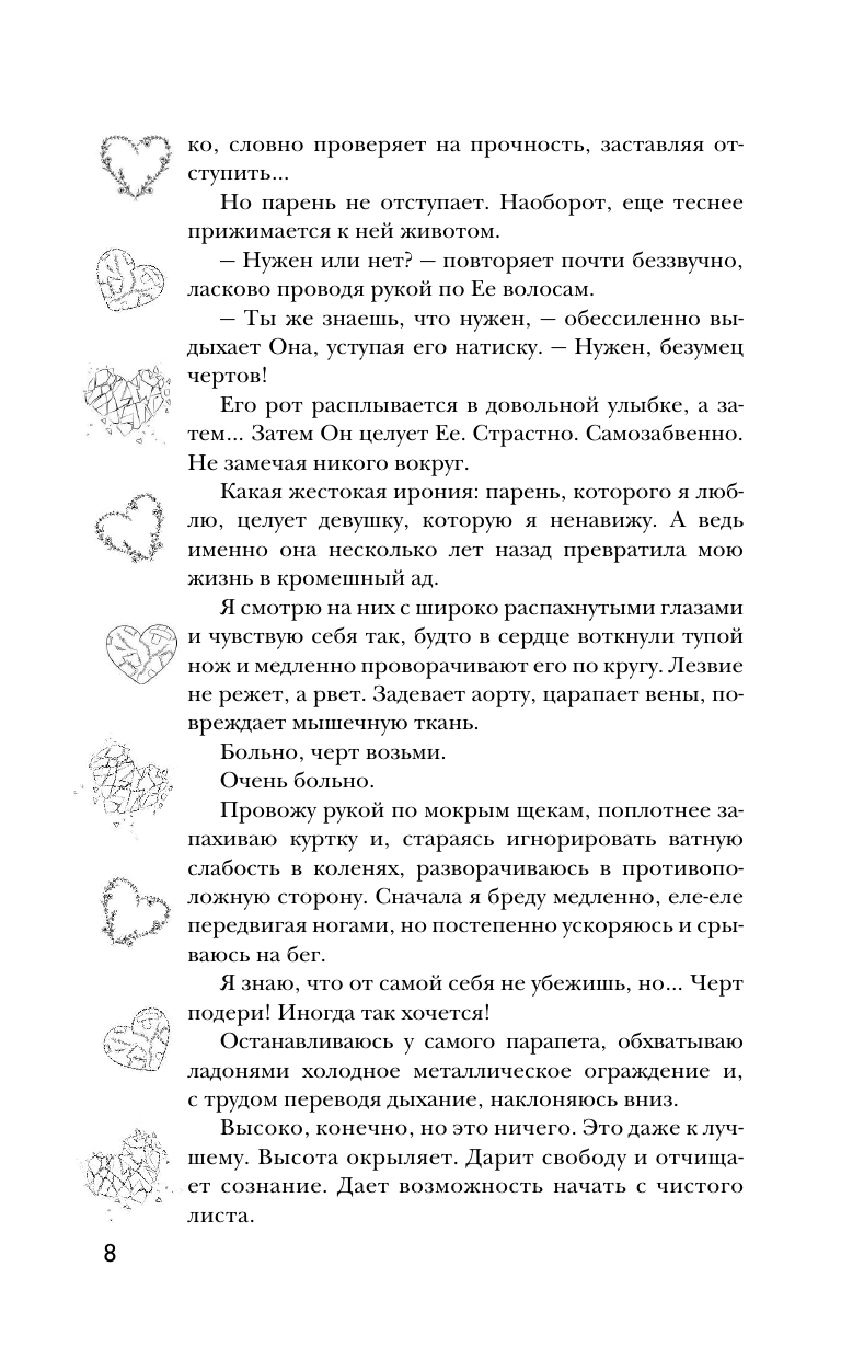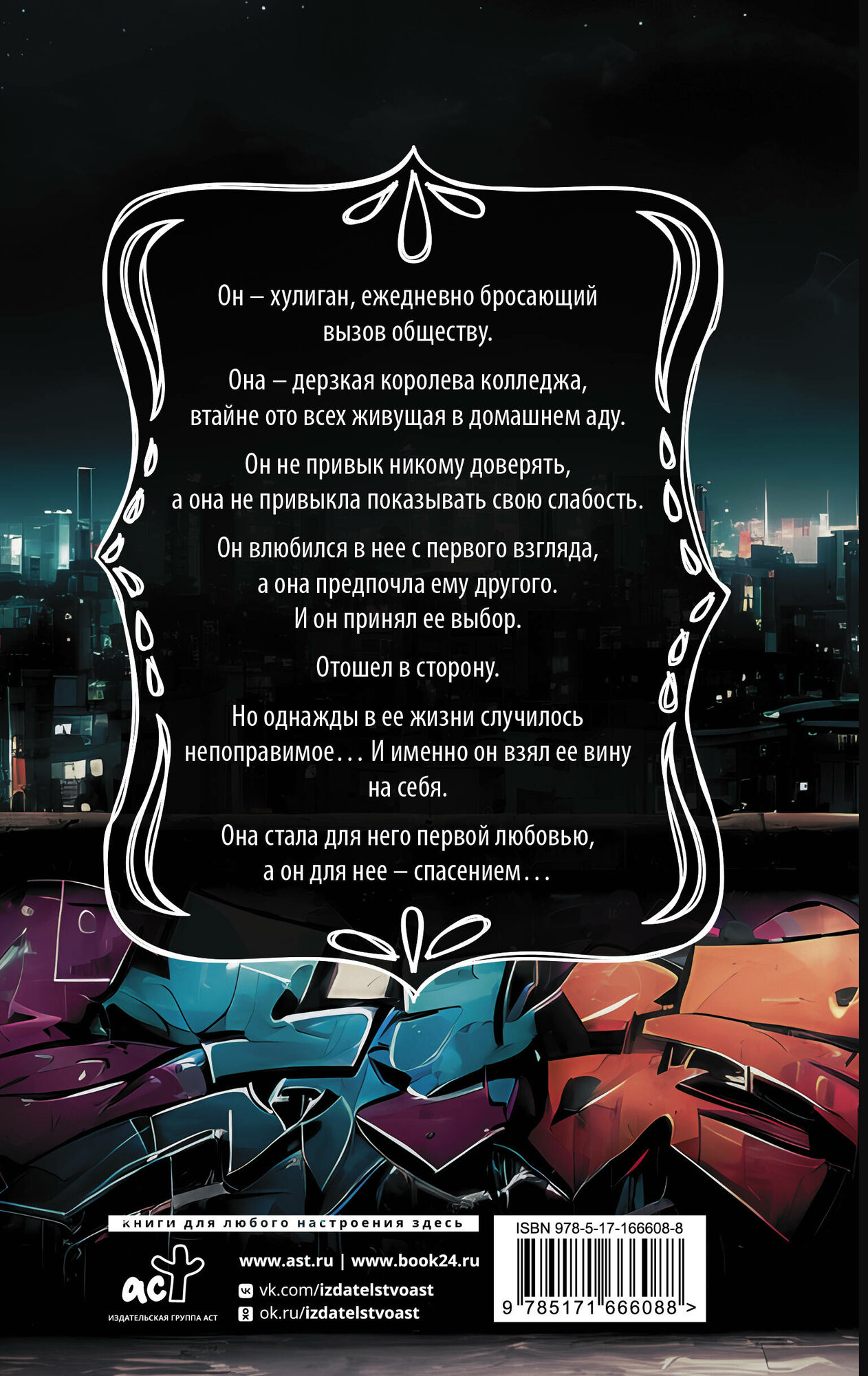 Он - хулиган, ежедневно бросающий вызов обществу. Она - дерзкая королева колледжа, втайне ото всех живущая в домашнем аду. Он не привык никому доверять, а она не привыкла показывать свою слабость. Он влюбился в нее с первого взгляда, а она предпочла ему другого. И он принял ее выбор. Отошел в сторону. Но однажды в ее жизни случилось непоправимое И именно он взял ее вину на себя. Она стала для него первой любовью, а он для нее - спасением
