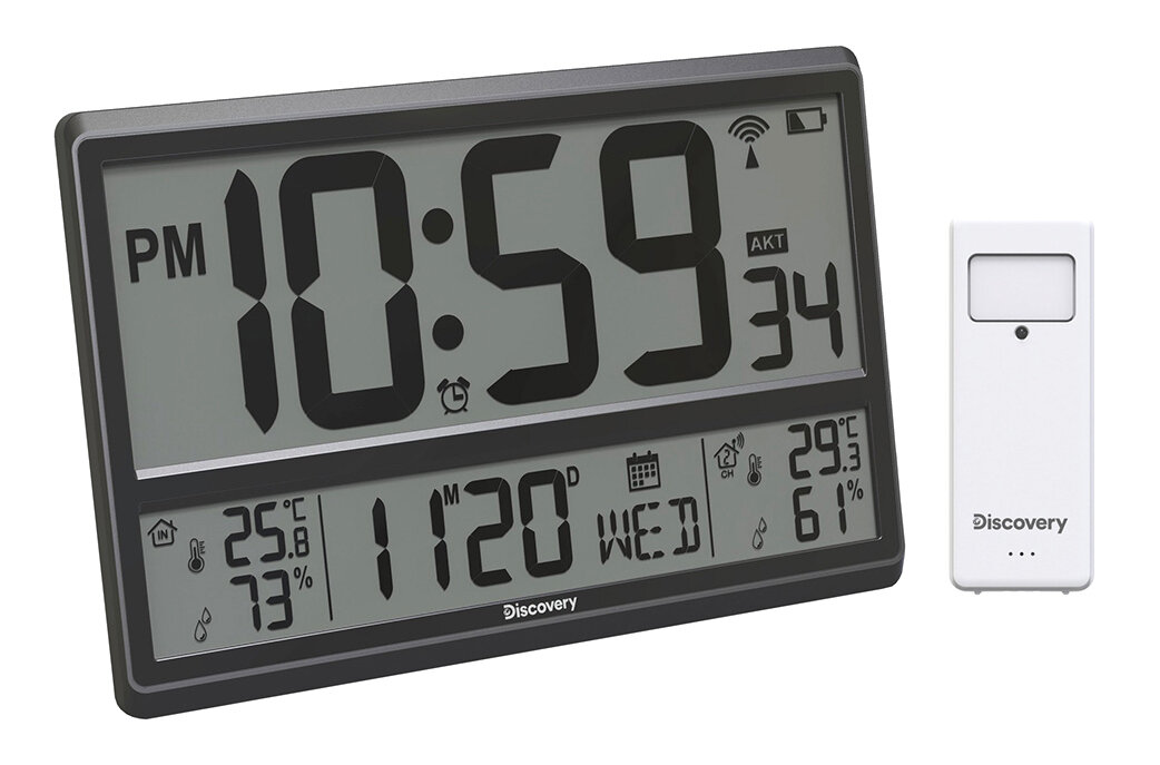 Discovery Channel (Дискавери ченэл) - всемирно известный научно-популярный телеканал о науке, технологиях, исследованиях и приключениях. Захватывающее сочетание историй разных жанров помогает взглянуть под разными углами на людей, места, организации и события, которые формируют наш мир. Discovery вдохновляет миллионы людей во всем мире, предлагая возможность открыть новое и утолить жажду познания. Мы с гордостью представляем серию оптики Discovery, произведенную Levenhuk при поддержке Discovery. В метеостанции Discovery Report WA50 нет ничего лишнего, она измеряет только базовые показатели: температуру и влажность воздуха. Но этого достаточно, чтобы составить представление о благоприятности домашнего микроклимата и погоде на улице - в комплектацию включен выносной датчик, поэтому прибор проводит измерения сразу в двух местах. Помимо метеофункций здесь есть также встроенные часы, календарь и будильник. При этом время отображается наиболее крупно - так, чтобы его было хорошо видно с большого расстояния. Внешне прибор выглядит очень сдержанно и современно: на передней панели нет ничего лишнего, все кнопки управления находятся сзади. Для питания метеостанции и датчика требуются батарейки, для передачи данных используется радиоканал. Основные особенности: Два встроенных монохромных экрана Крупная индикация текущего времени Показатели температуры и влажности воздуха Отображение даты и дня недели Выносной датчик в комплекте, питание от батареек Комплектация: Метеостанция (основной блок) Датчик Инструкция по эксплуатации и гарантийный талон