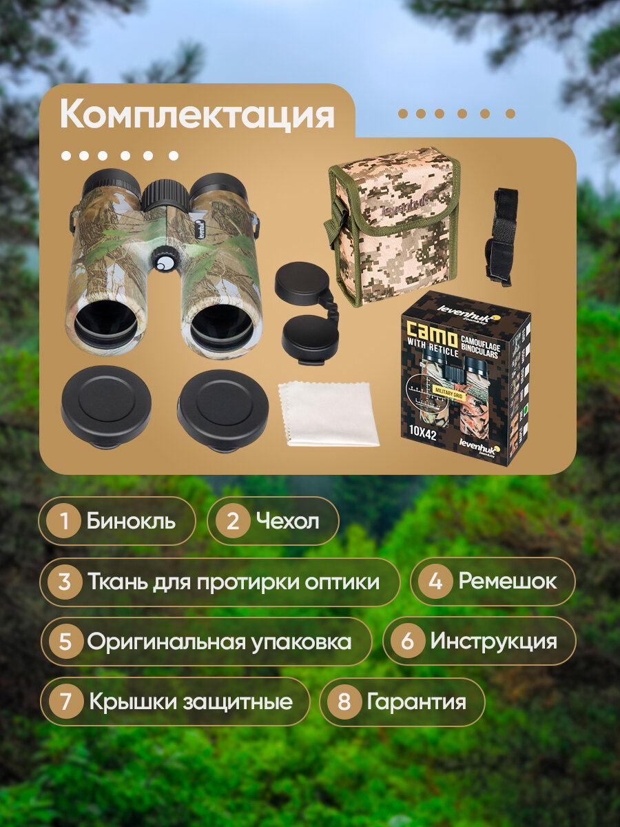 | Разделитель | Бинокль Levenhuk Camo 8x42 с сеткой |